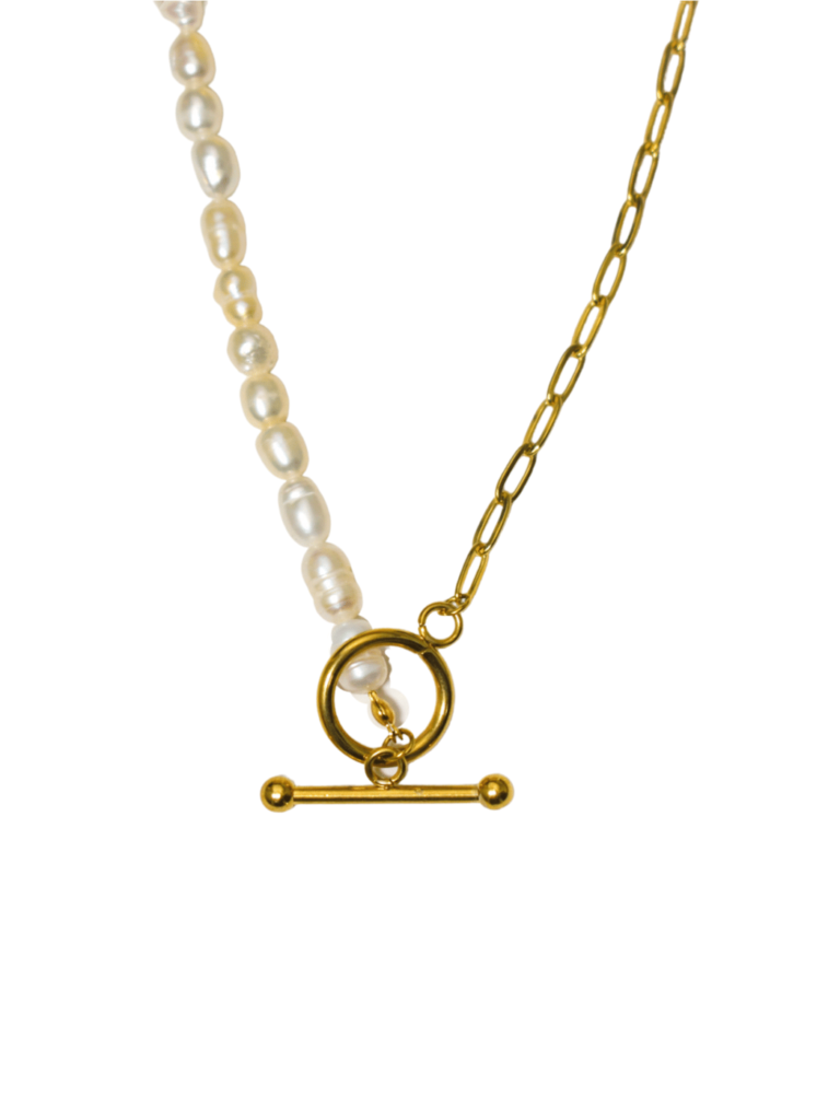 Ατσάλινο Κολιέ με Μαργαριτάρια