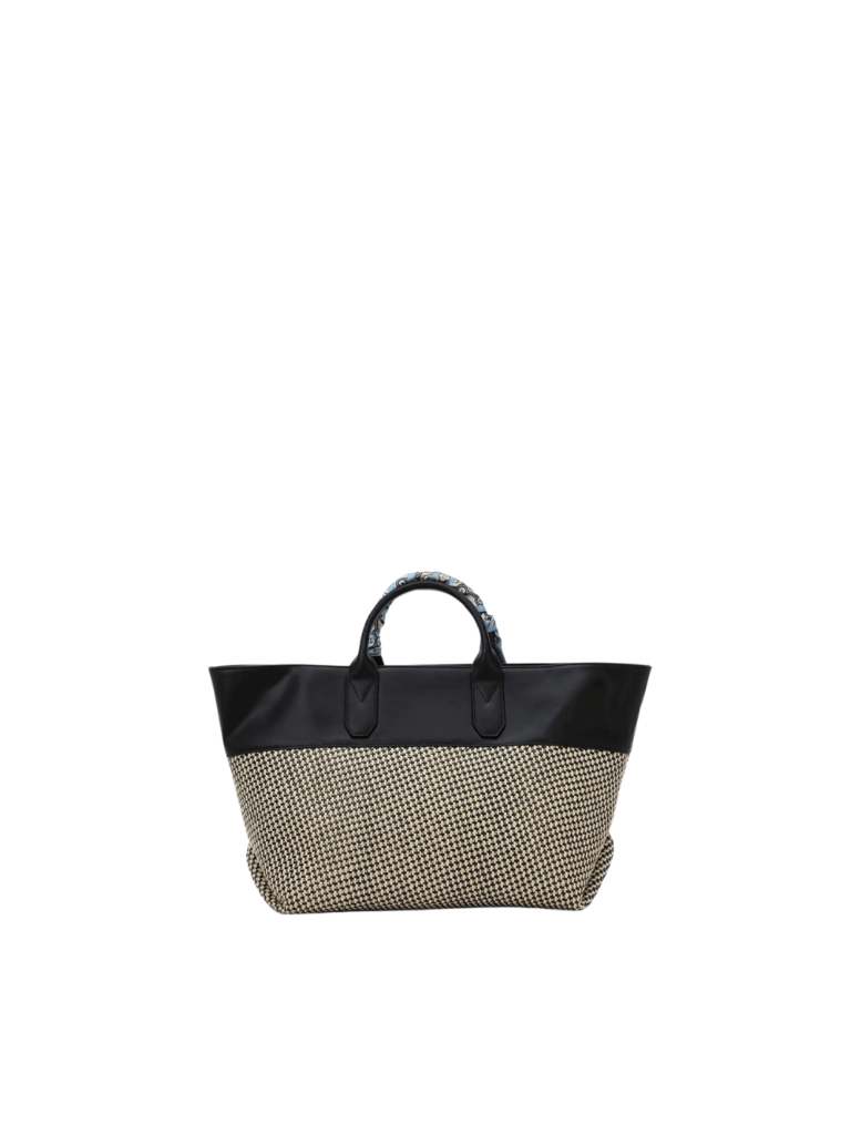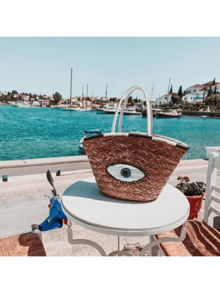 Γυναικεία Ψάθινη Τσάντα με καφέ Δερματίνη Λουράκια