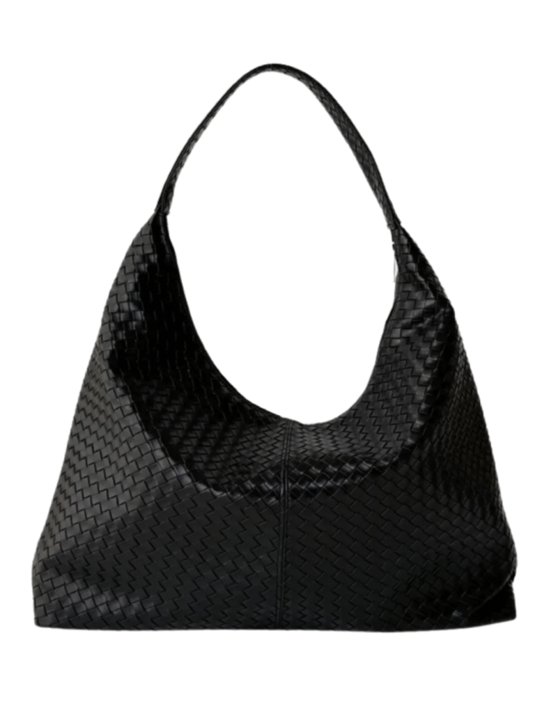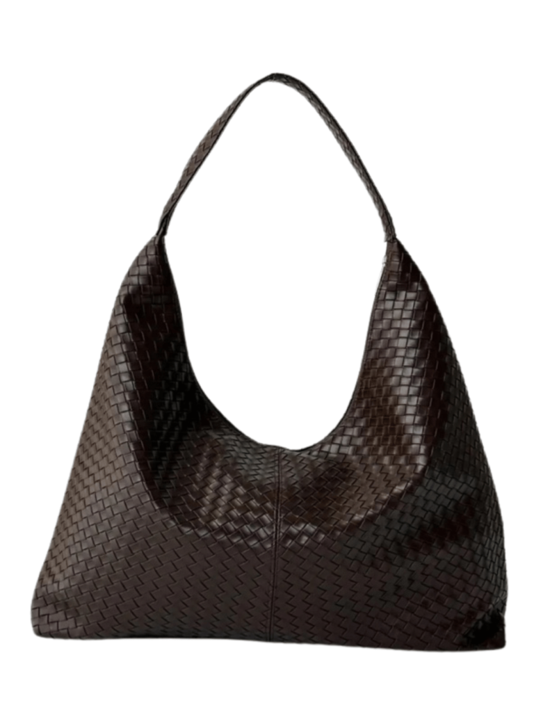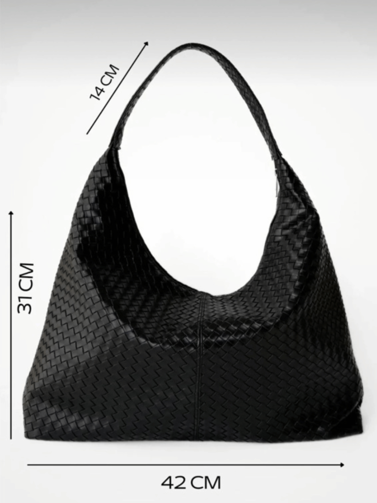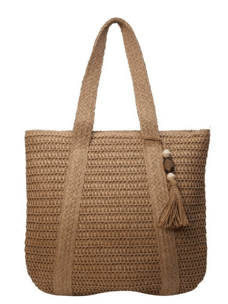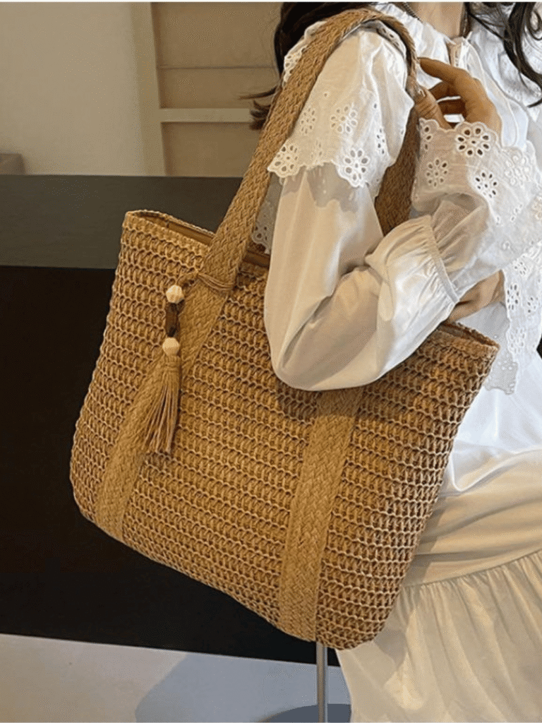 Γυναικεία Ψάθινη Τσάντα Ώμου με Μοντέρνα Πλέξη-Μπεζ