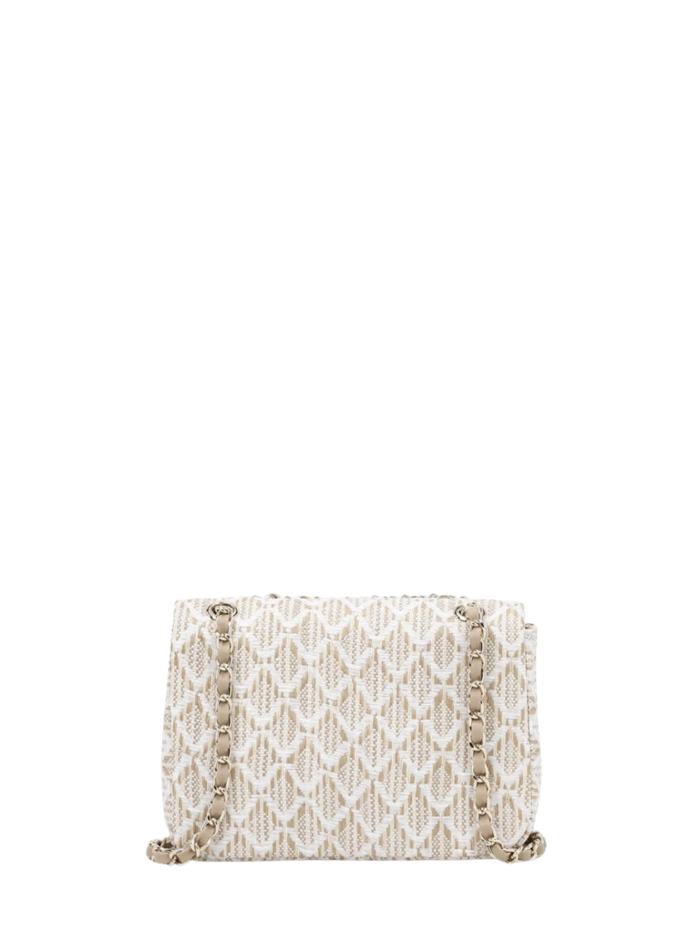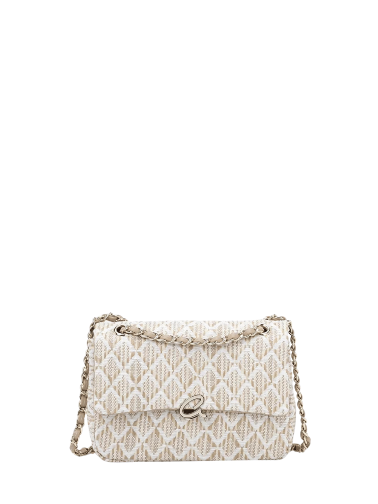 Γυναικεία Ψάθινη Τσάντα Ώμου με Μοντέρνα Πλέξη-Εκρού