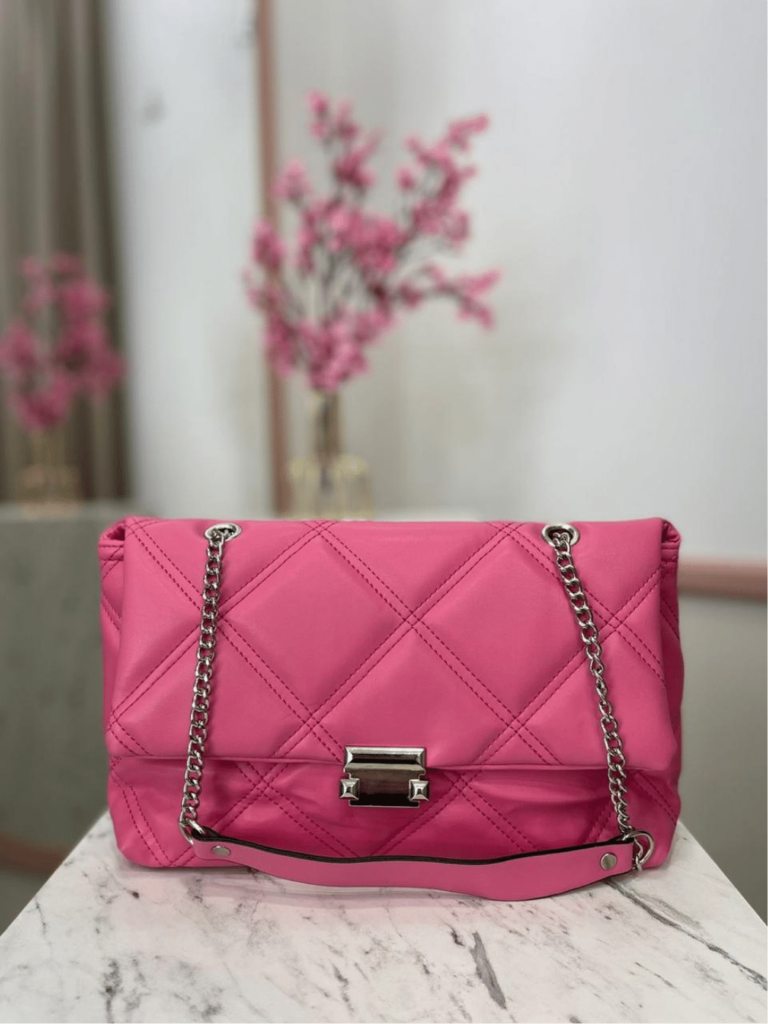 Καπιτονέ Τσάντα Ώμου – Φούξια
