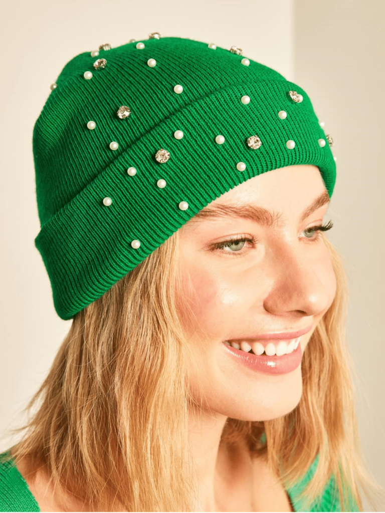 Γυναικείο Μονόχρωμο Σκουφάκι με Πέρλες-Ροζ