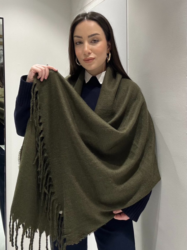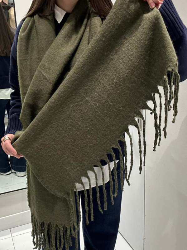 Γυναικείο Μονόχρωμο Κασκόλ Με Κρόσσια – Χακί