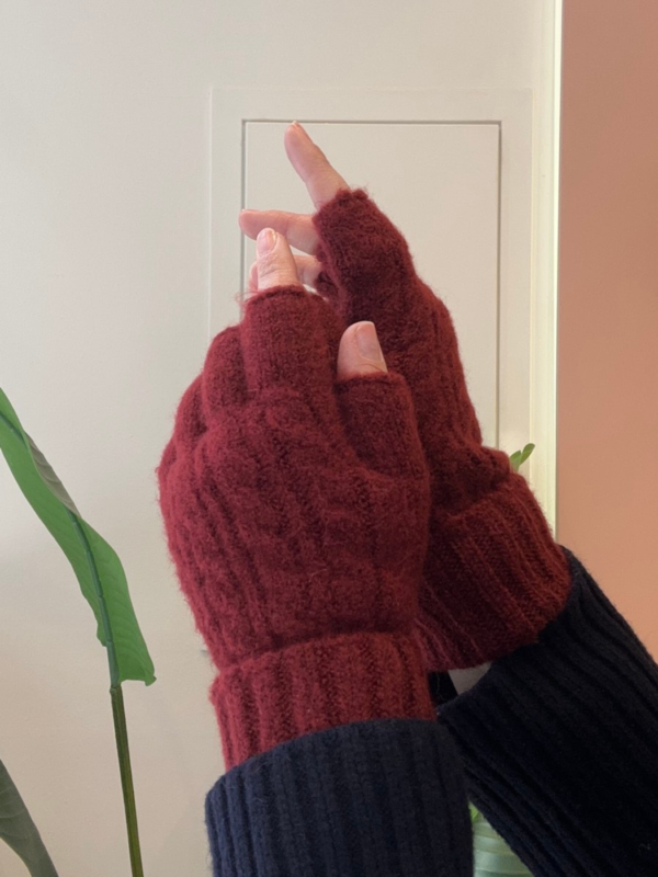 Σετ Πλεκτό Σκούφος & Γάντια Χωρίς Δάχτυλα – Μπορντό