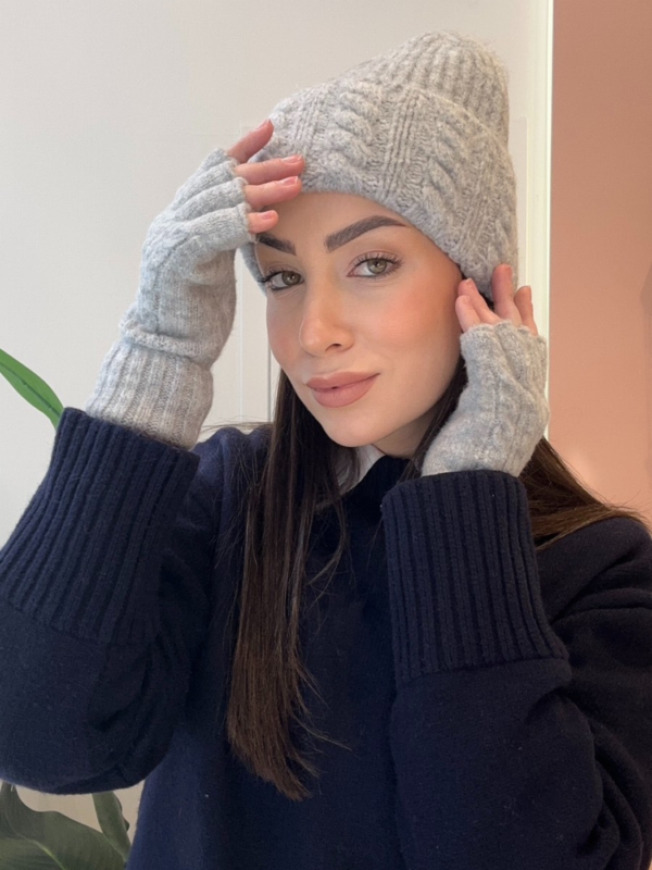 Σετ Πλεκτό Σκούφος & Γάντια Χωρίς Δάχτυλα – Γκρι