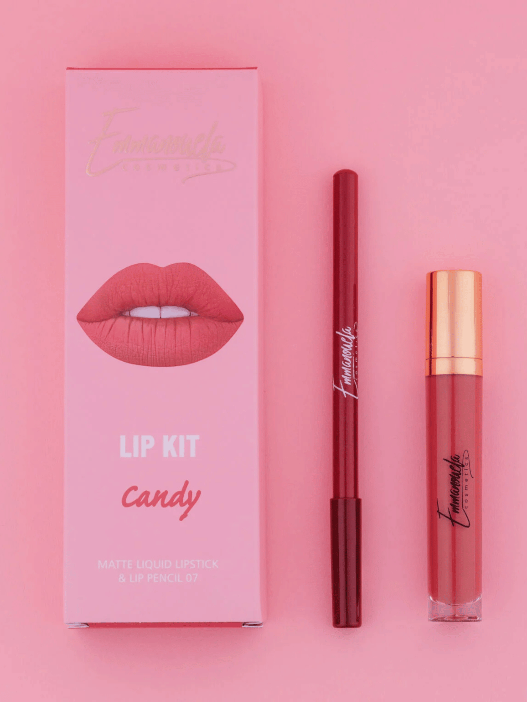 Το lip kit “candy” αποτελείται από το lipstick “candy” και το lip pencil No.07 “carmine”.