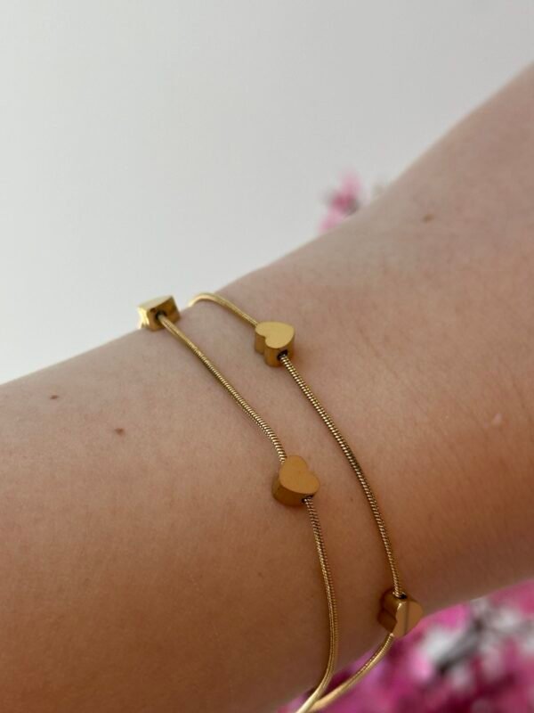 Μοντέρνο και κομψό διπλό βραχιόλι από ανοξείδωτο ατσάλι με δύο αλυσίδες – μία snake και μία κλασική με κρίκους. Το βραχιόλι είναι διακοσμημένο με πολλές μικρές πεταλούδες που κρέμονται διακριτικά, δημιουργώντας μια αέρινη και ρομαντική αίσθηση. Ανάμεσά τους προστίθενται μικρές χάντρες για μια παιχνιδιάρικη πινελιά. Ανθεκτικό στο νερό, δεν μαυρίζει και είναι ιδανικό για καθημερινή χρήση.