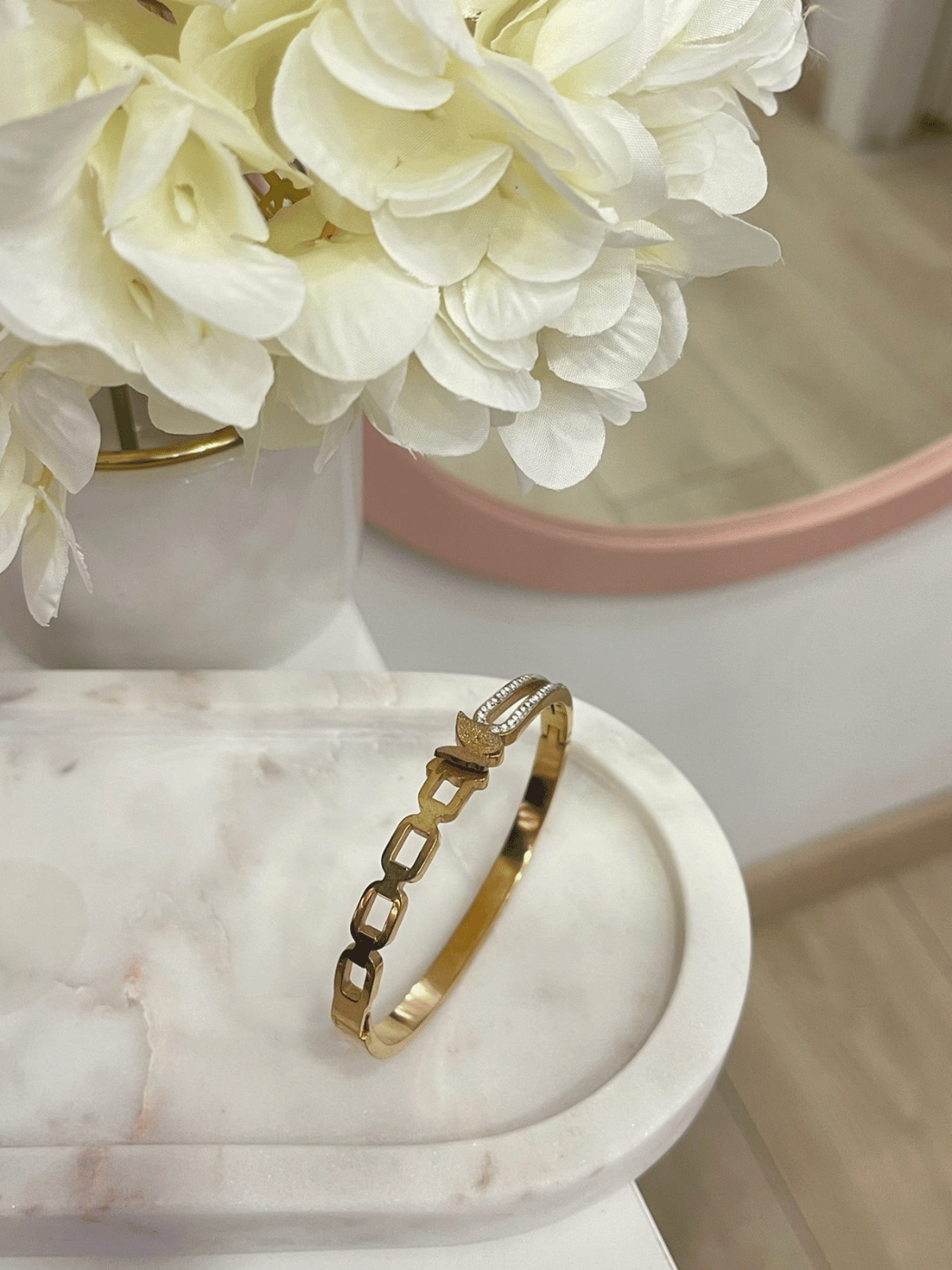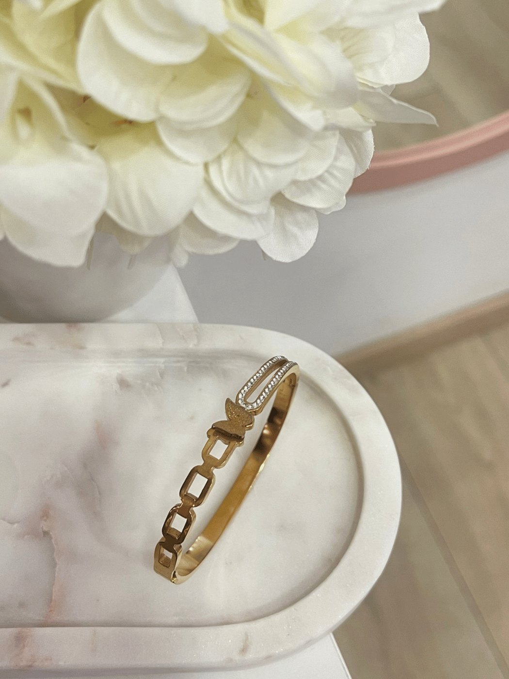 Γυναικεία Ατσάλινη Χειροπέδα με σχέδιο πεταλούδας και διακριτικά στρας σε ασημί και rosegold χρώμα. Ένα υπέροχο κόσμημα για όλες τις ώρες της ημέρας!