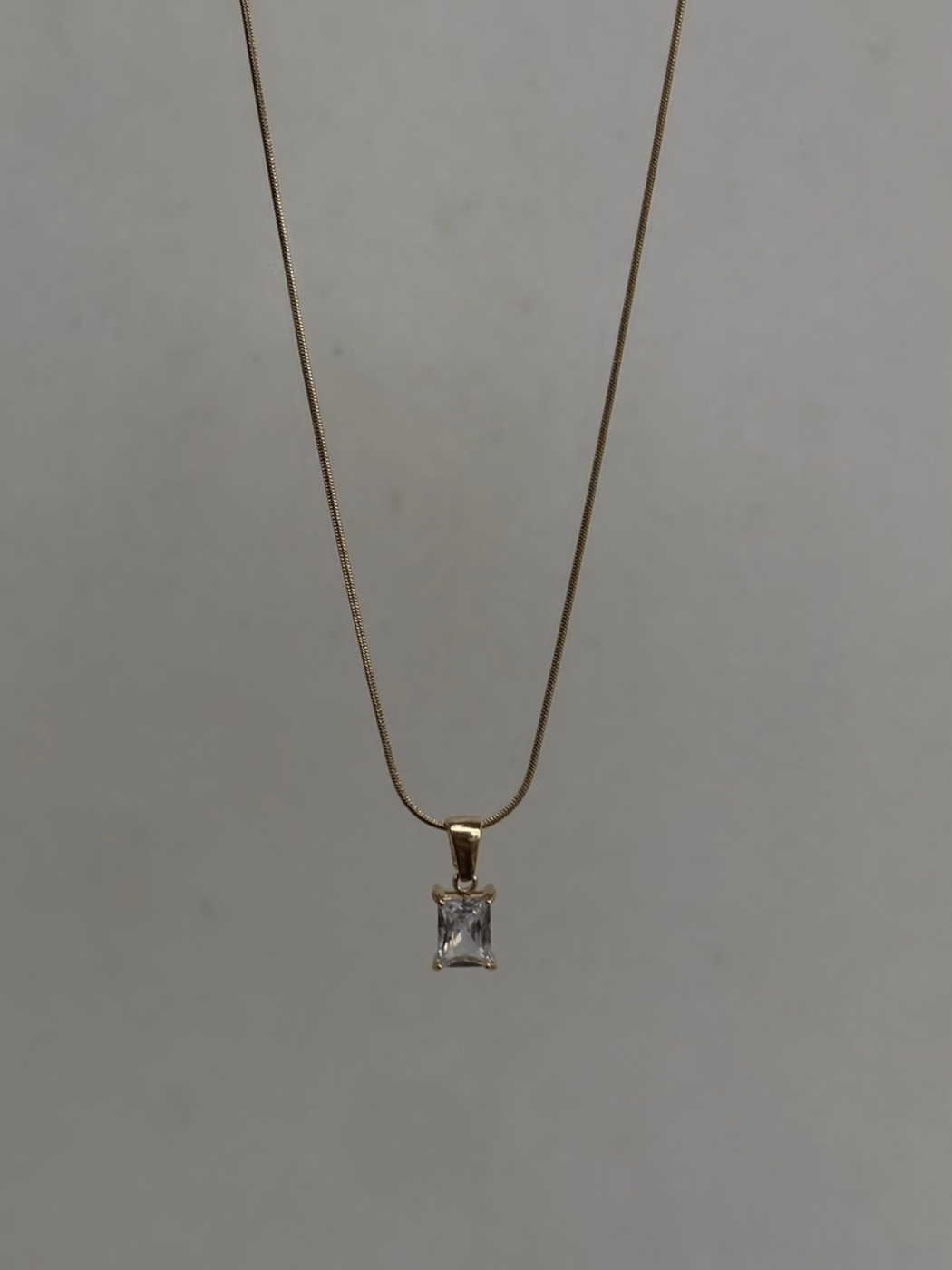 Αυτό το ατσάλινο κολιέ συνδυάζει minimal αισθητική με διαχρονική κομψότητα. Διαθέτει λεπτή αλυσίδα από ανοξείδωτο ατσάλι και λαμπερή τετράγωνη πέτρα, τοποθετημένο σε διακριτική βάση τεσσάρων νυχιών για μέγιστη λάμψη.