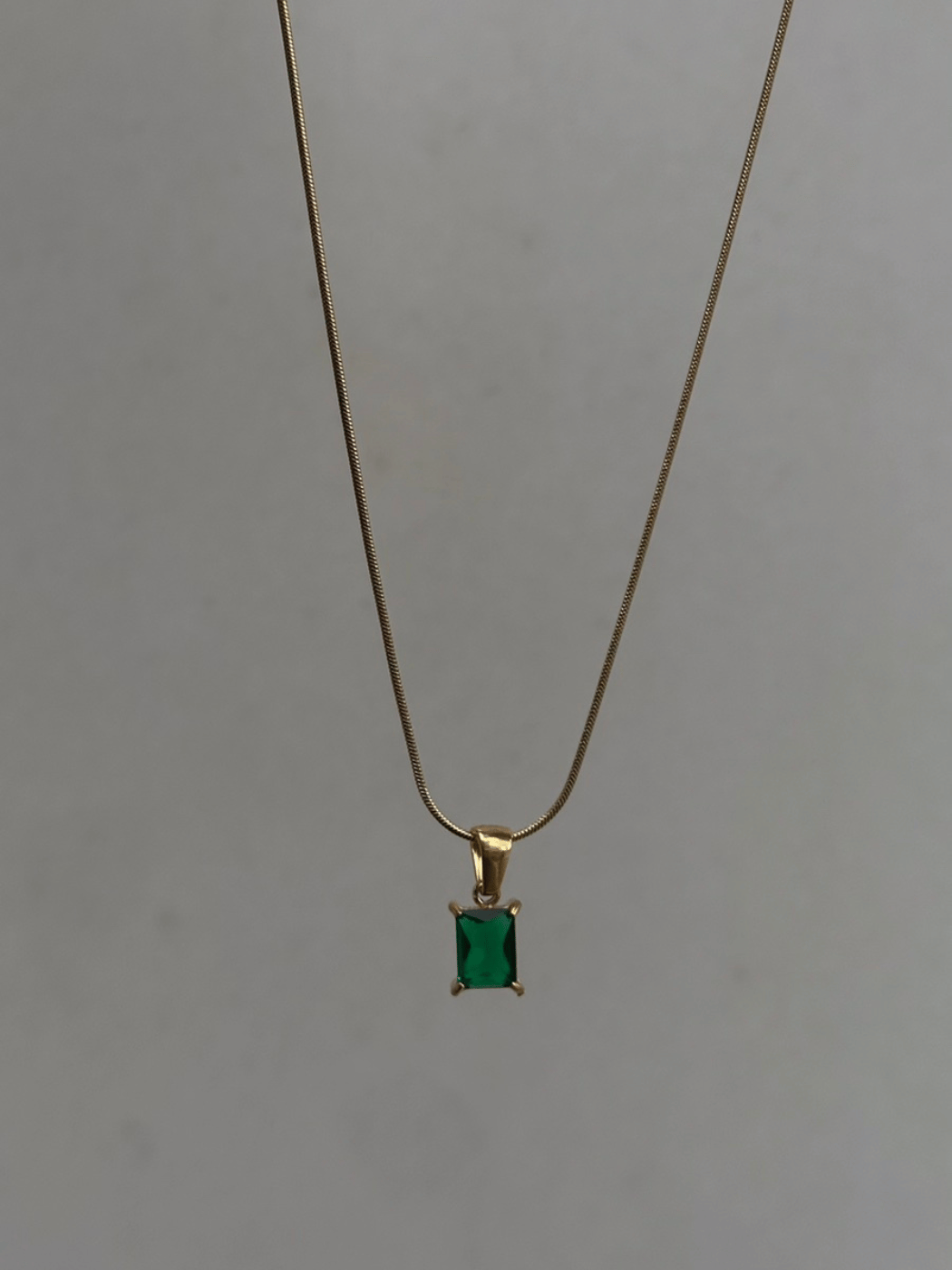 Ατσάλινο Κολιέ με Τετράγωνη Πράσινη Πέτρα