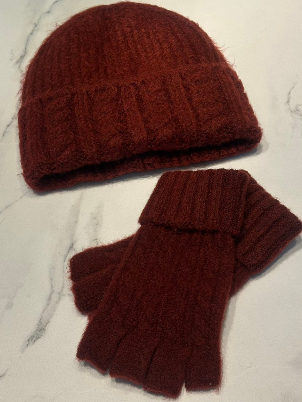 Σετ Πλεκτό Σκούφος & Γάντια Χωρίς Δάχτυλα – Μπορντό