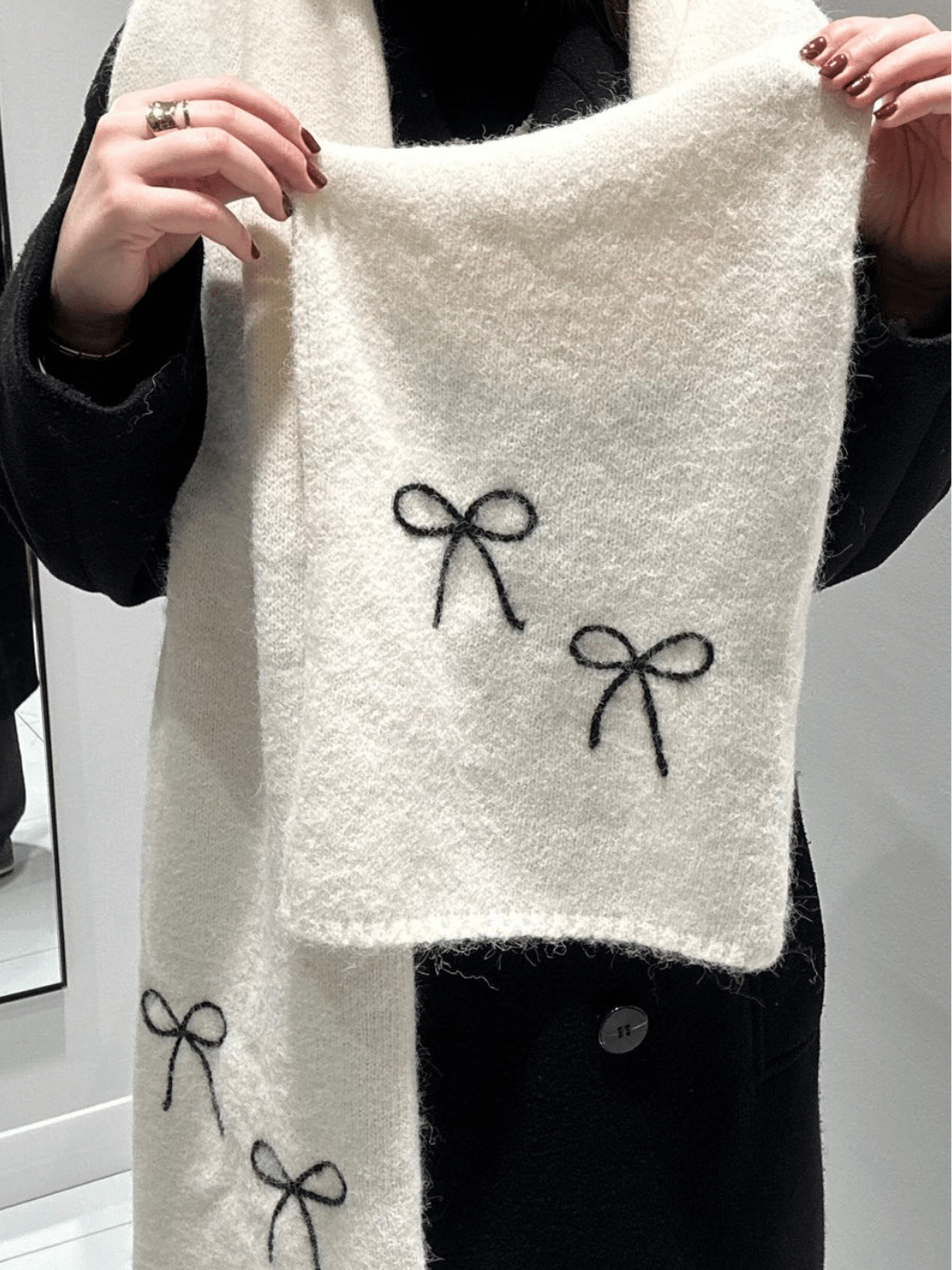 Γυναικείο Σετ Πλεκτό Ζεστό Κασκόλ & Σκουφάκι – Μαλακό και Άνετο με Φιόγκο-Άσπρο