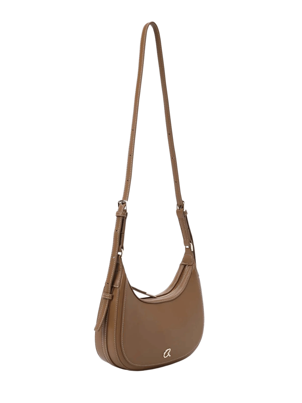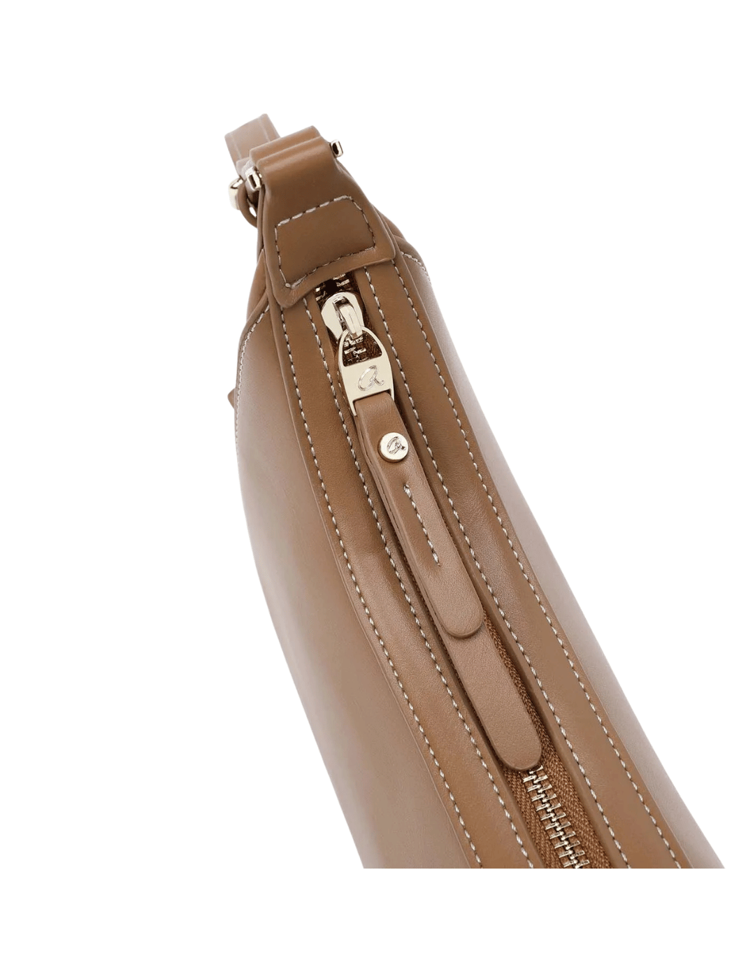 Γυναικεία τσάντα ώμου σε οβάλ σχήμα, με εξωτερικά γαζιά και από υψηλής ποιότητας τεχνόδερμα. Εσωτερικά έχει φόδρα, ανοιχτές θήκες και τσέπη που κλείνει. Διαθέτει ρυθμιζόμενο λουράκι για να φοριέται και χιαστί και κλείνει με φερμουάρ.