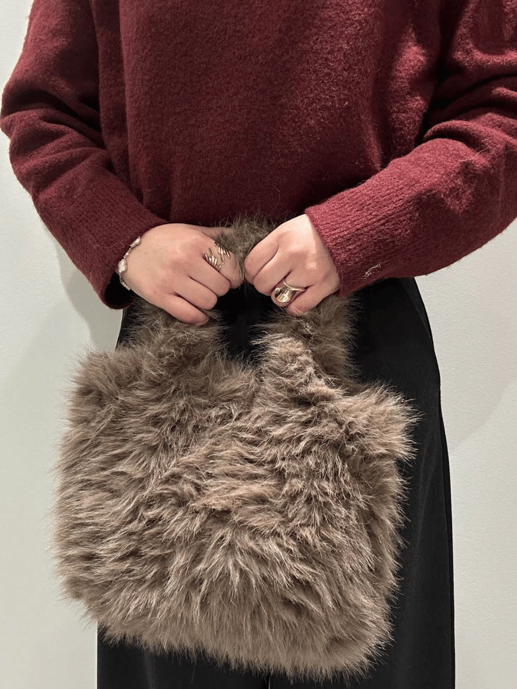 Γυναικεία Γούνινη Τσάντα Τετράγωνη-Σκούρο Μπεζ