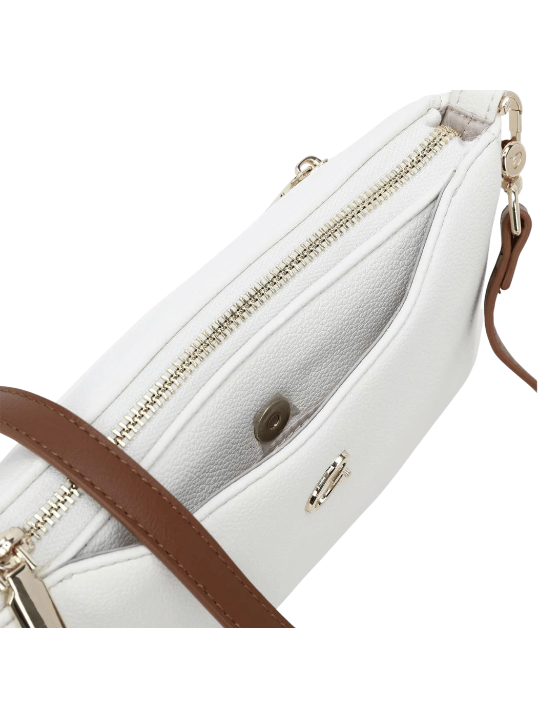 Γυναικεία τσάντα χιαστί από συνθετικό δέρμα. Είναι επενδυμένη με φόδρα και περιέχει εσωτερικές θήκες. Το ρυθμιζόμενο – αποσπώμενο λουράκι κάνει το κράτημα της πιο εύκολο. Διαθέτει πίσω τσέπη και μπροστά θήκη που κλείνει με μαγνητικό κούμπωμα. Ασφαλίζεται με φερμουάρ.