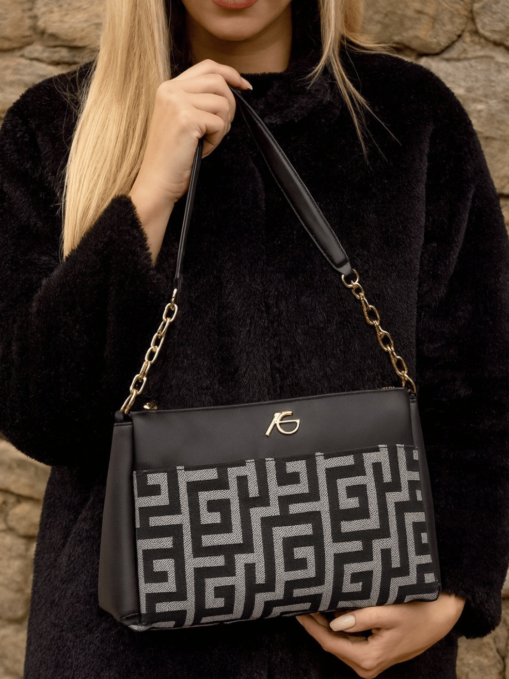 Γυναικεία χειροποίητη τσάντα ώμου με σχέδιο μαιάνδρου της εταιρείας ARI GORGIO. Κλείνει με φερμουάρ ενώ διαθέτει προσαρμοζόμενο λουρί ώμου και δύο χωρίσματα. Διαθέτει πολλαπλές εσωτερικές θήκες και χωρίσματα.