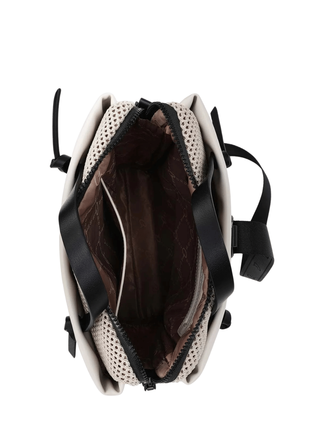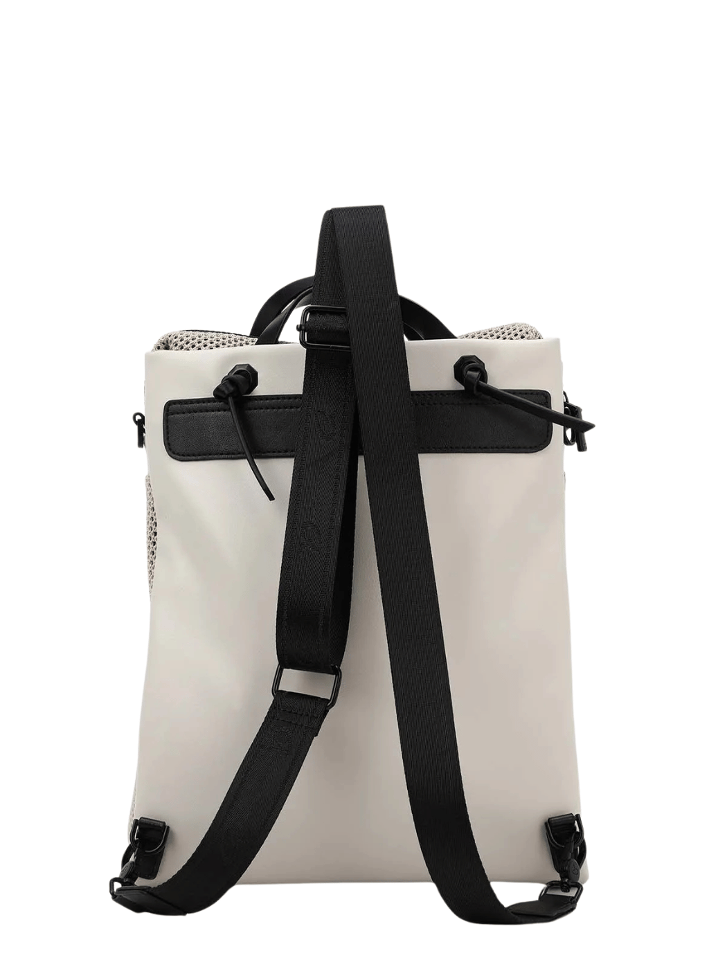 Γυναικείο σακίδιο πλάτης 3 way to wear από υψηλής ποιότητας τεχνόδερμα. Διαθέτει διπλά χερούλια για καλύτερο κράτημα και ρυθμιζόμενους ιμάντες πλάτης. Στα πλαϊνά είναι επενδυμένο με φάσμα από δίχτυ. Εσωτερικά διαθέτει φόδρα και περιέχει θήκες και τσέπη που κλείνει. Κλείσιμο με φερμουάρ.