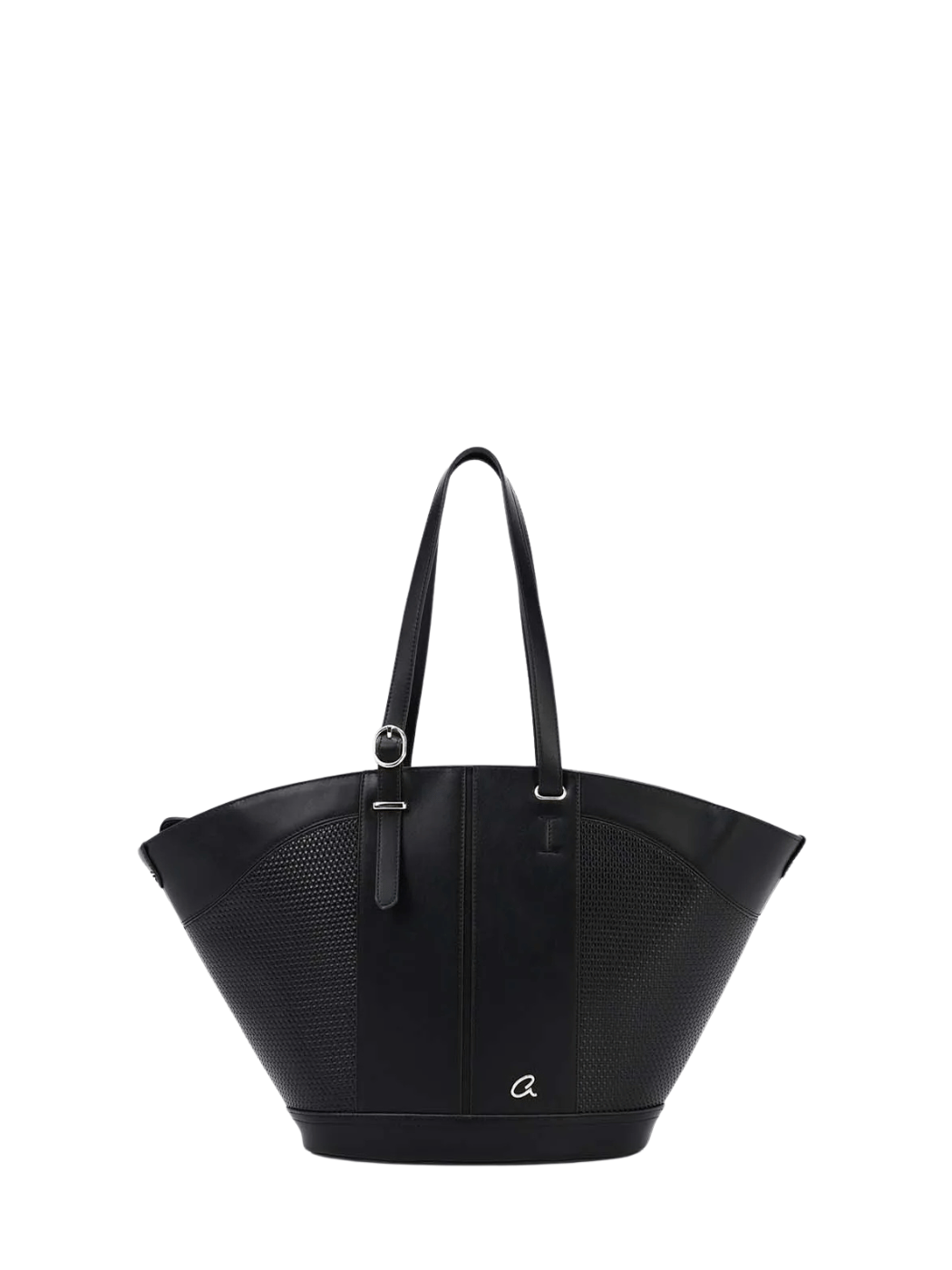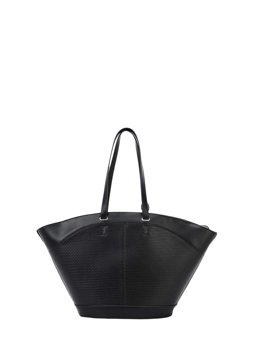 Γυναικεία τσάντα ώμου, με διπλά χερούλια και ανάγλυφες λεπτομέρειες, κατασκευασμένη από υψηλής ποιότητας τεχνόδερμα. Έχει ένα ευρύχωρο εσωτερικό και κλείνει με φερμουάρ.