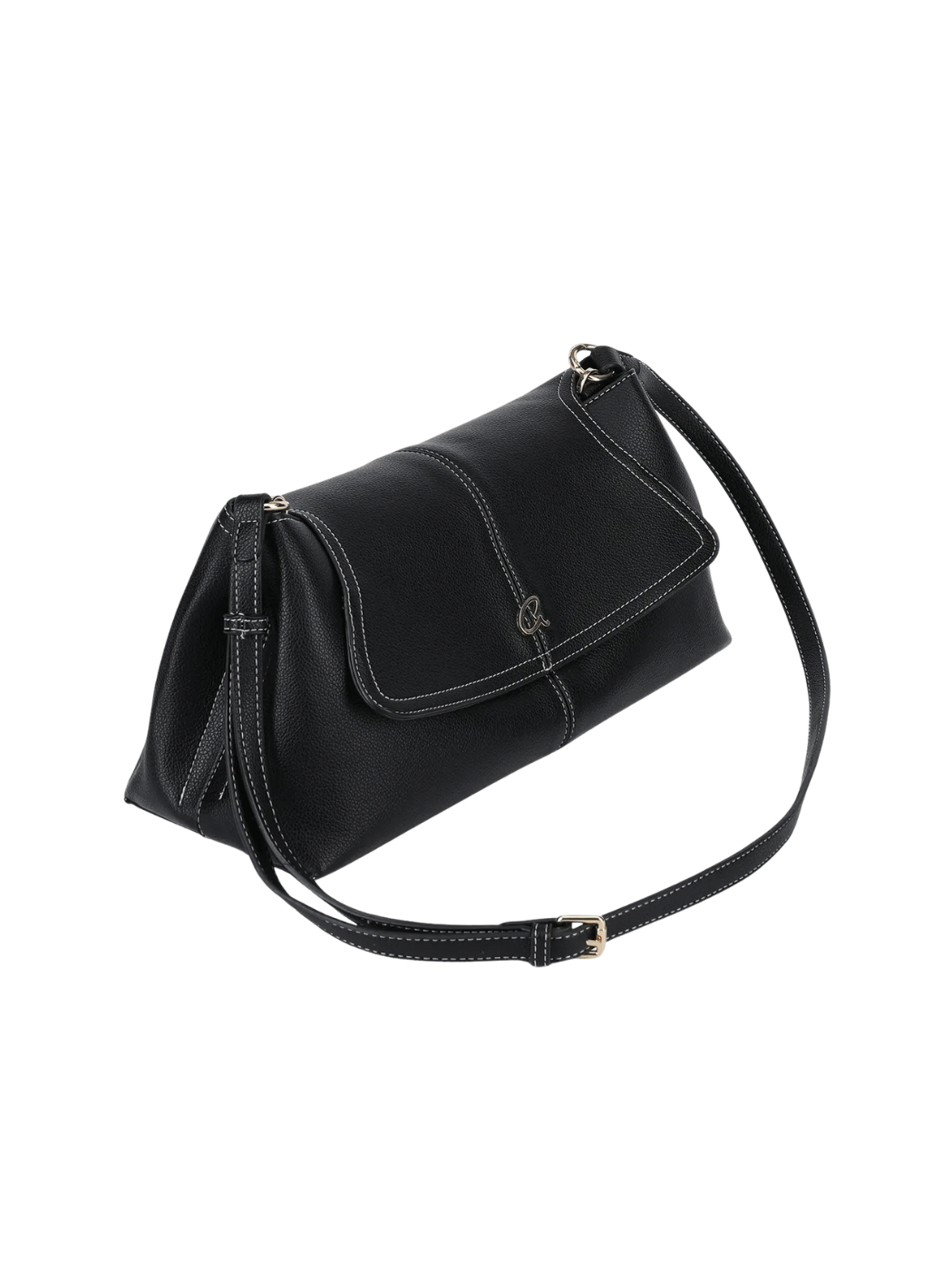 Claudine γυναικεία τσάντα ώμου, κατασκευασμένη από τεχνόδερμα με μαλακή δομή και διακοσμημένη με λευκά γαζιά. Εσωτερικά διαχωρίζεται σε τρία τμήματα με το κεντρικό να ασφαλίζει με φερμουάρ και να περιέχει μία ανοιχτή τσέπη, μία με φερμουάρ και φόδρα. Ασφαλίζει με μαγνητικό κούμπωμα στο καπάκι, και συνοδεύεται από αποσπώμενο λουράκι για να χρησιμοποιηθεί και ως χιαστί. Αποτελεί μία μοντέρνα επιλογή για τσάντα.