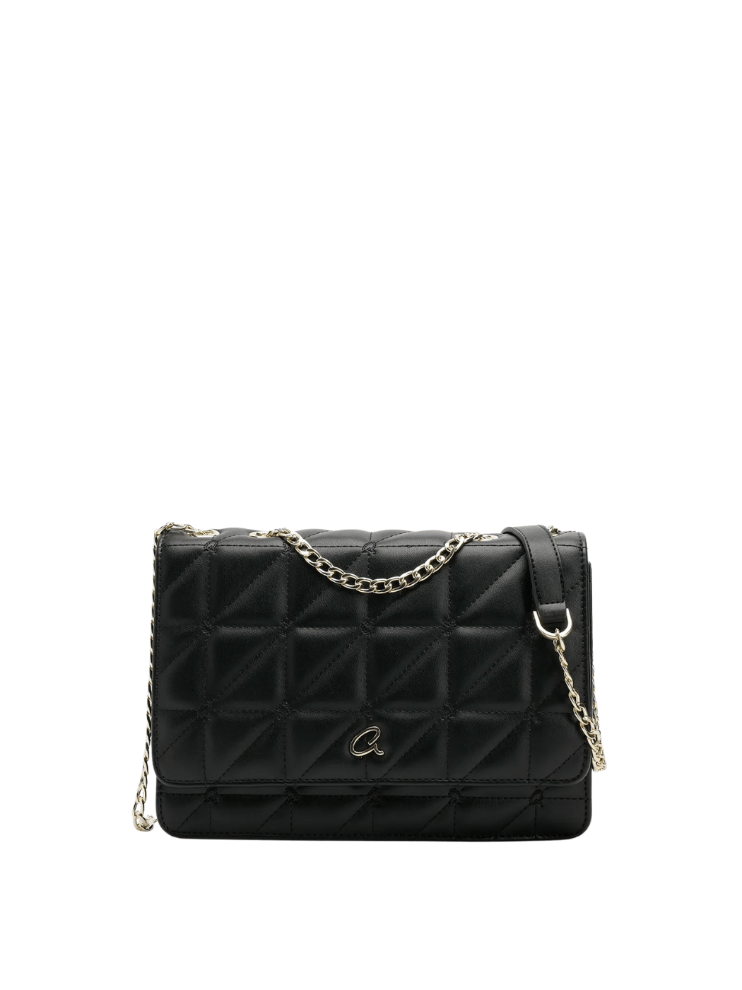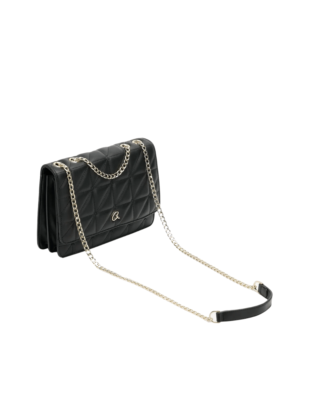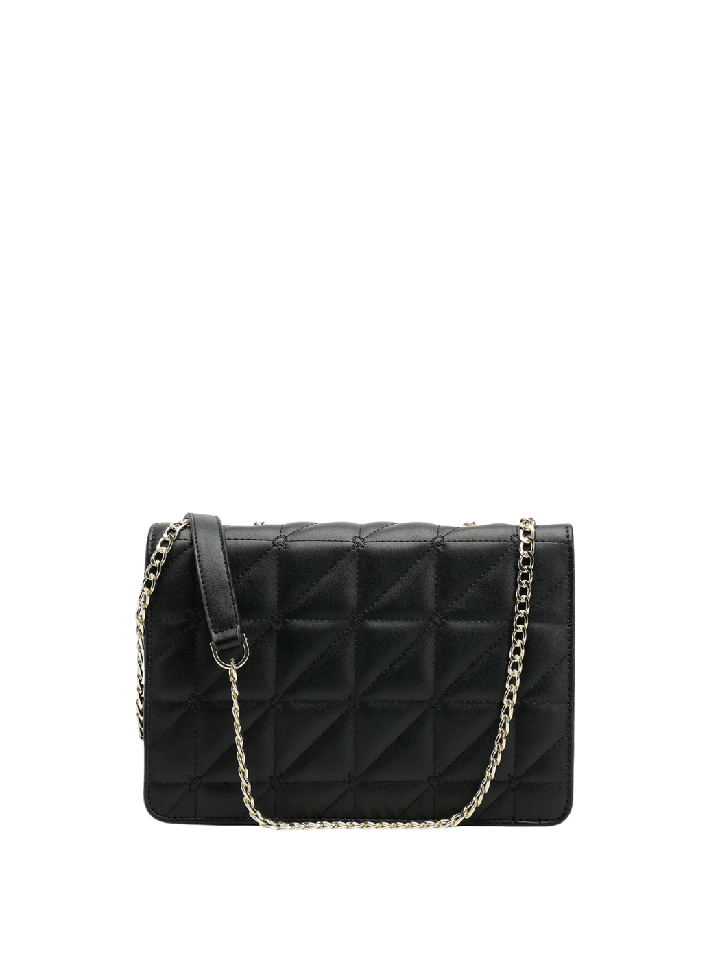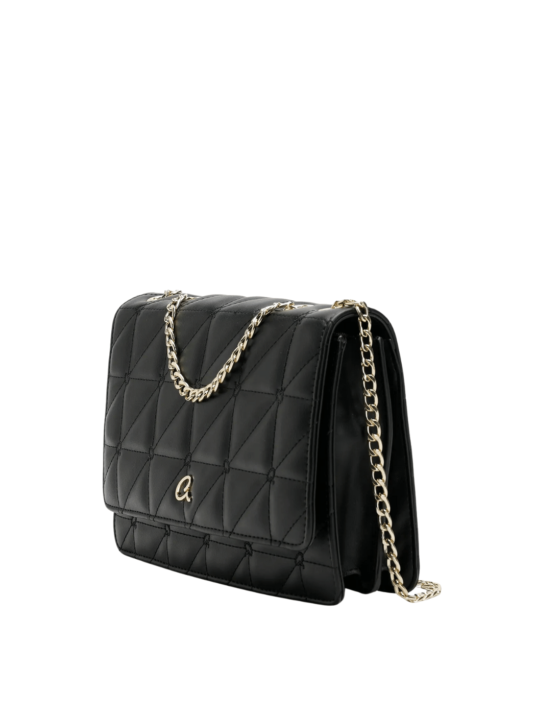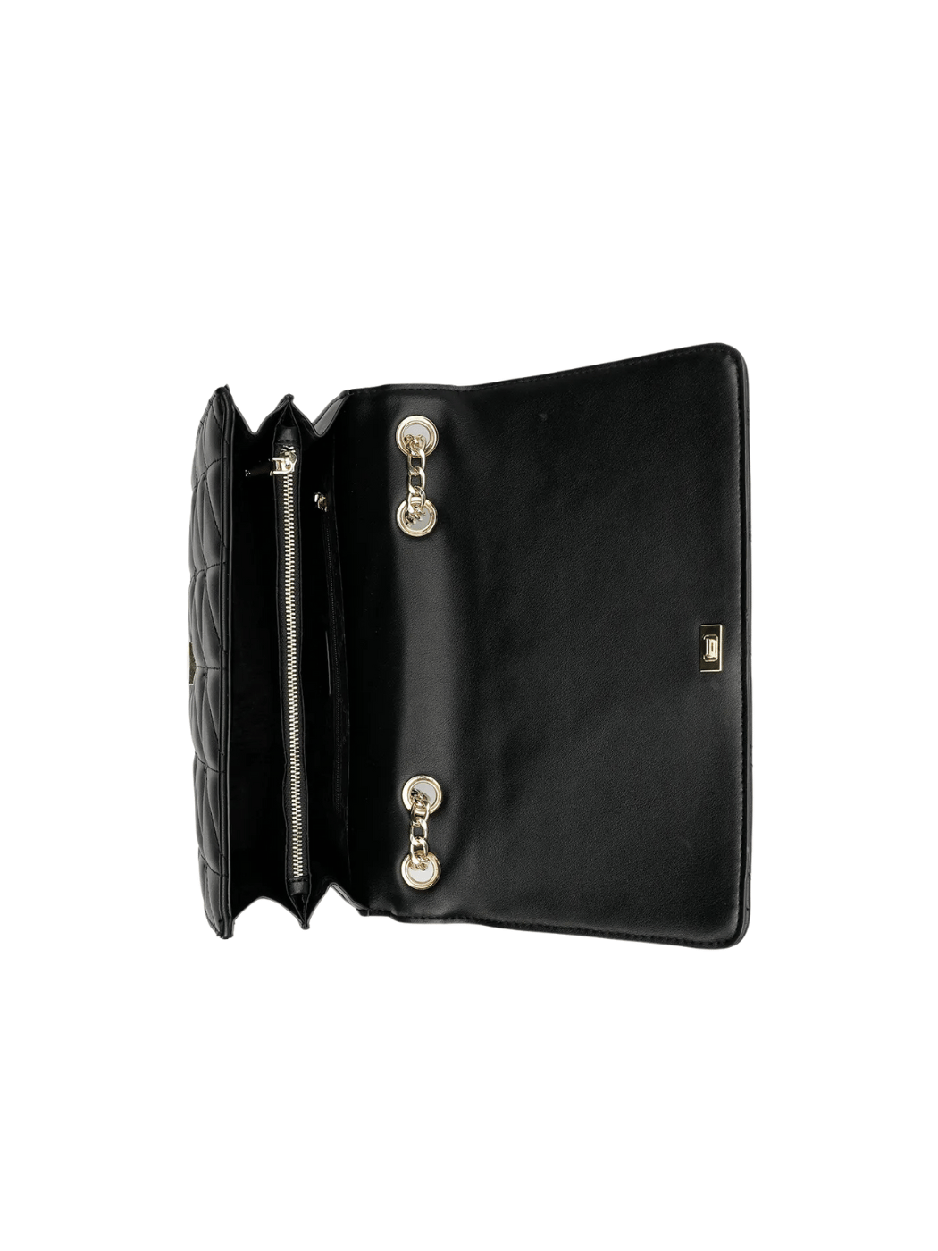 Γυναικεία τσάντα ώμου Garbina από τεχνόδερμα υψηλής ποιότητας με ραφές ‘a’ που της πρσφέρουν καπιτονέ υφή. Ασφαλίζει με μεταλλικό κούμπωμα και καπάκι και διαθέτει διπλή αλυσίδα η οποία μπορεί να προσαρμοστεί για να φορεθεί και ως χιαστί. Στο εσωτερικό είναι επενδυμένη με φόδρα και διαχωρίζεται σε δύο τμήματα που περιλαμβάνουν θήκη και τσέπη με φερμουάρ. Αποτελεί ιδανική επιλογή για κάθε εμφάνιση.