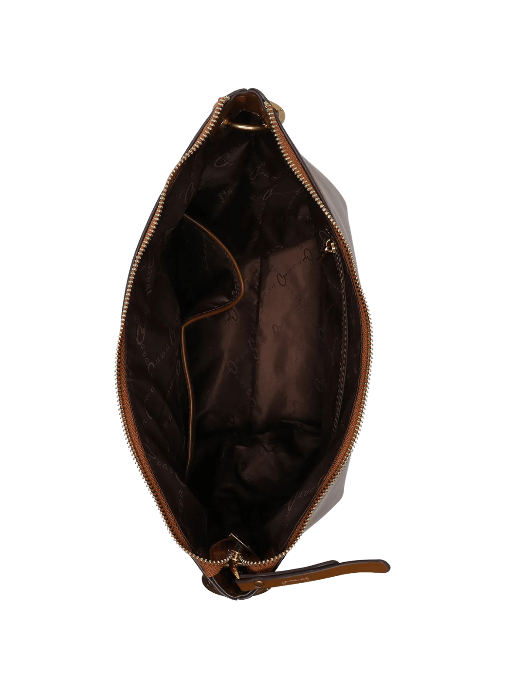 Γυναικεία τσάντα ώμου Maisie, κατασκευασμένη από τεχνόδερμα υψηλής ποιότητας με λεία υφή. Είναι επενδυμένη με φόδρα εσωτερικά και περιέχει μία τσέπη με φερμουάρ και δύο ανοιχτές θήκες για οργάνωση. Με ξεχωριστό πλεγμένο χερούλι για κράτημα χειρός και επιπλέον λουράκι για χρήση ως χιαστί. Κλείσιμο με φερμουάρ. Μία κλασική τσάντα με μοντέρνες πινελιές, κατάλληληλη για να ολοκληρώσει κάθε εμφάνιση.