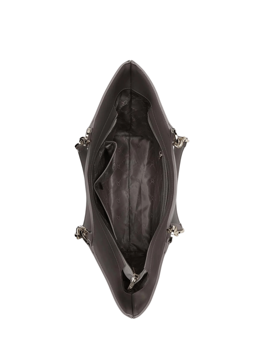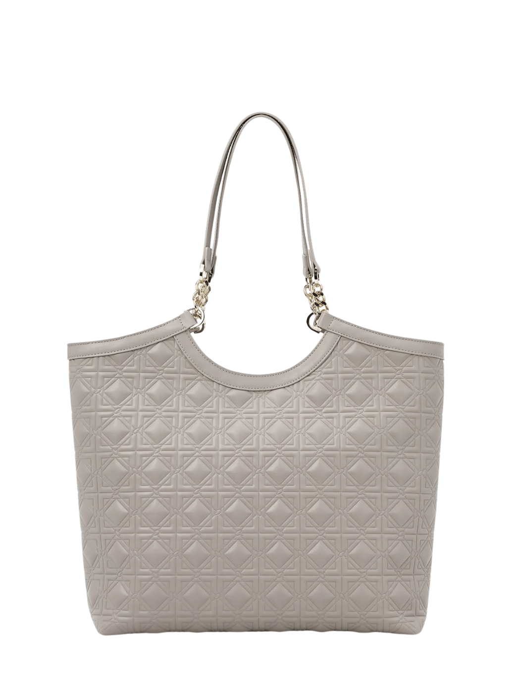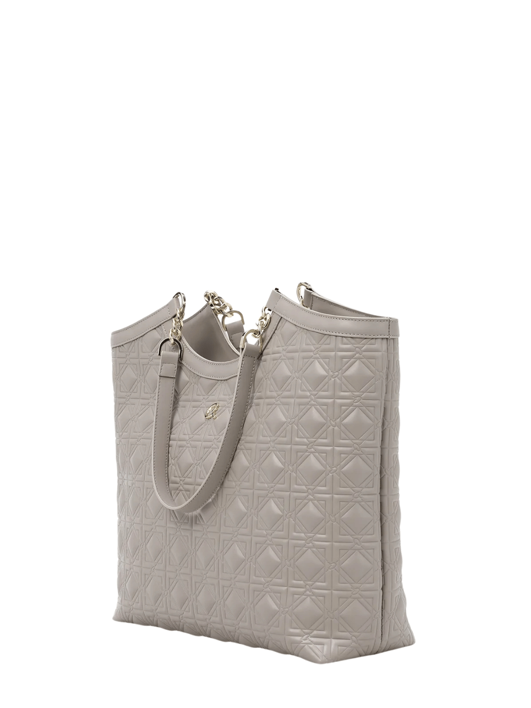 Γυναικεία τσάντα ώμου με ανάγλυφο σχέδιο και χρυσές λεπτομέρειες, από τεχνόδερμα υψηλής ποιότητας. Διαθέτει διπλά χερούλια για καλύτερο κράτημα. Εσωτερικά είναι επενδυμένη με φόδρα και περιέχει θήκες και τσέπη που κλείνει. Ασφαλίζεται με φερμουάρ.