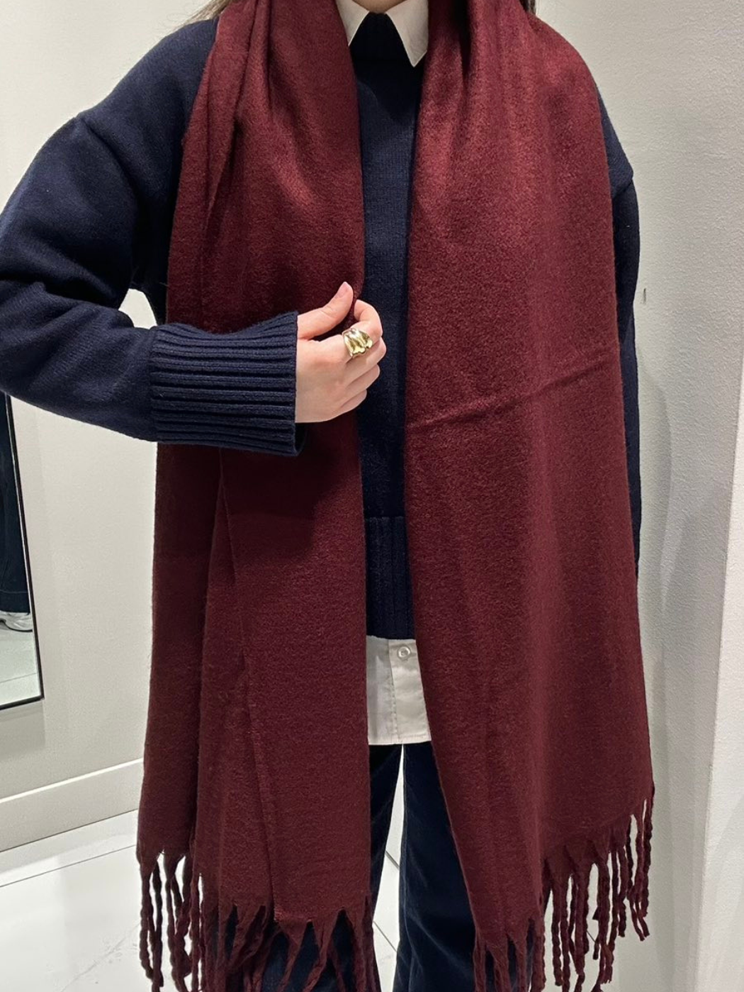 Γυναικείο Μονόχρωμο Κασκόλ Με Κρόσσια – Μπορντό
