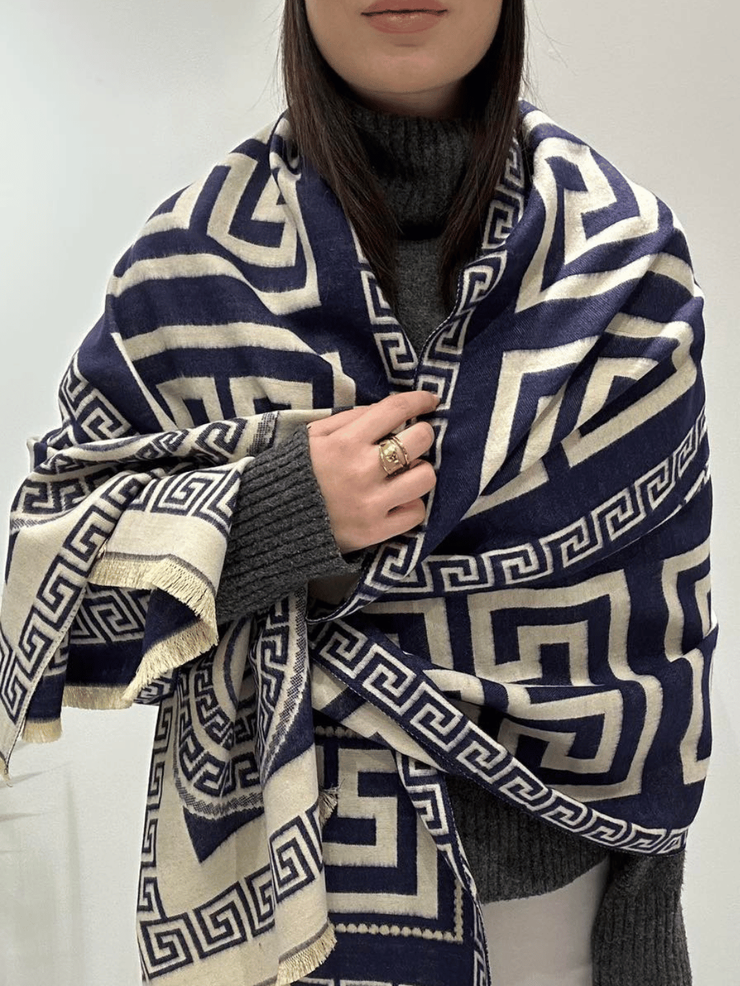 Γυναικεία Κομψή Πασμίνα με Σχέδιο Μαίανδρος-Σκούρο Μπλε