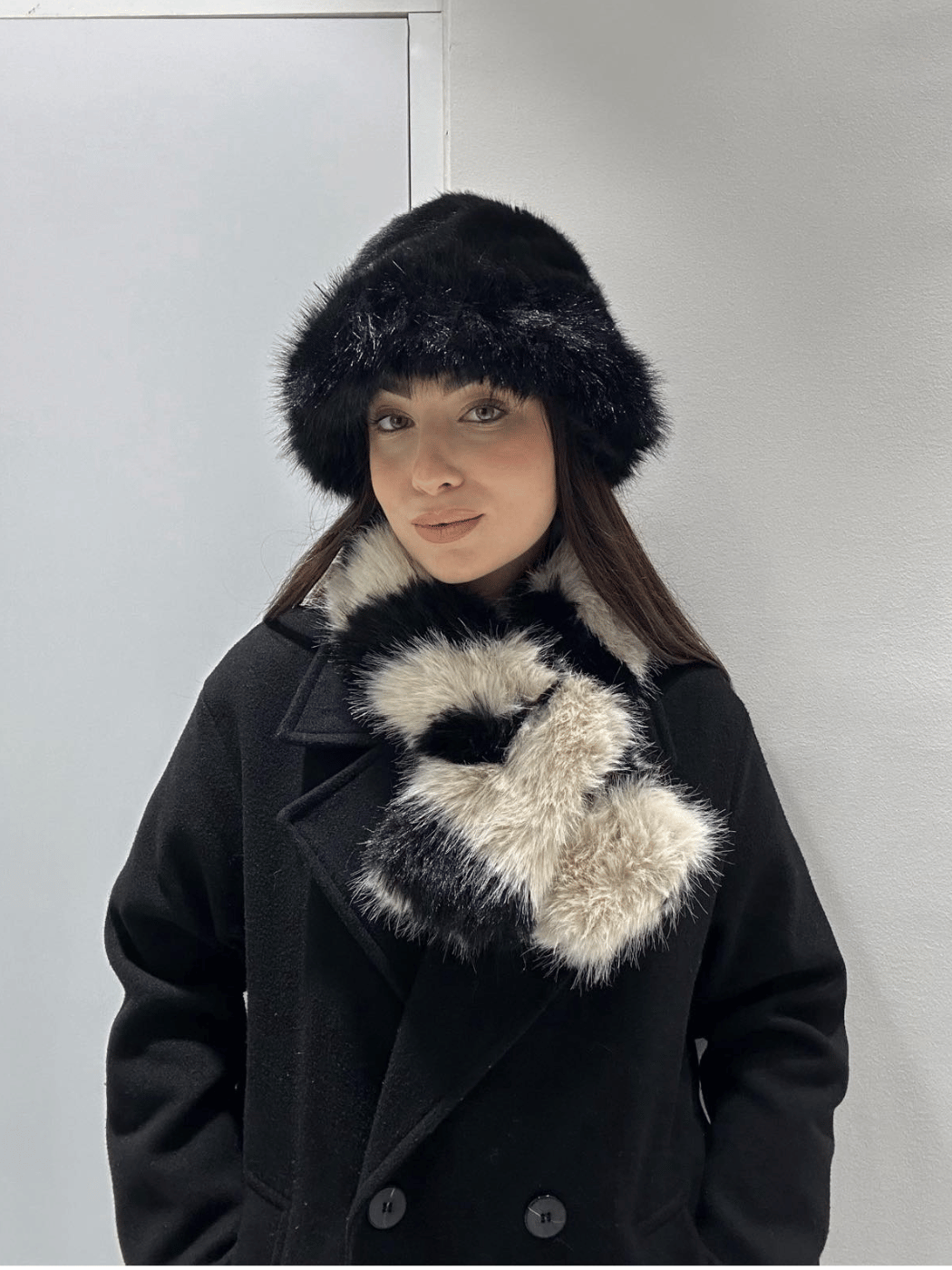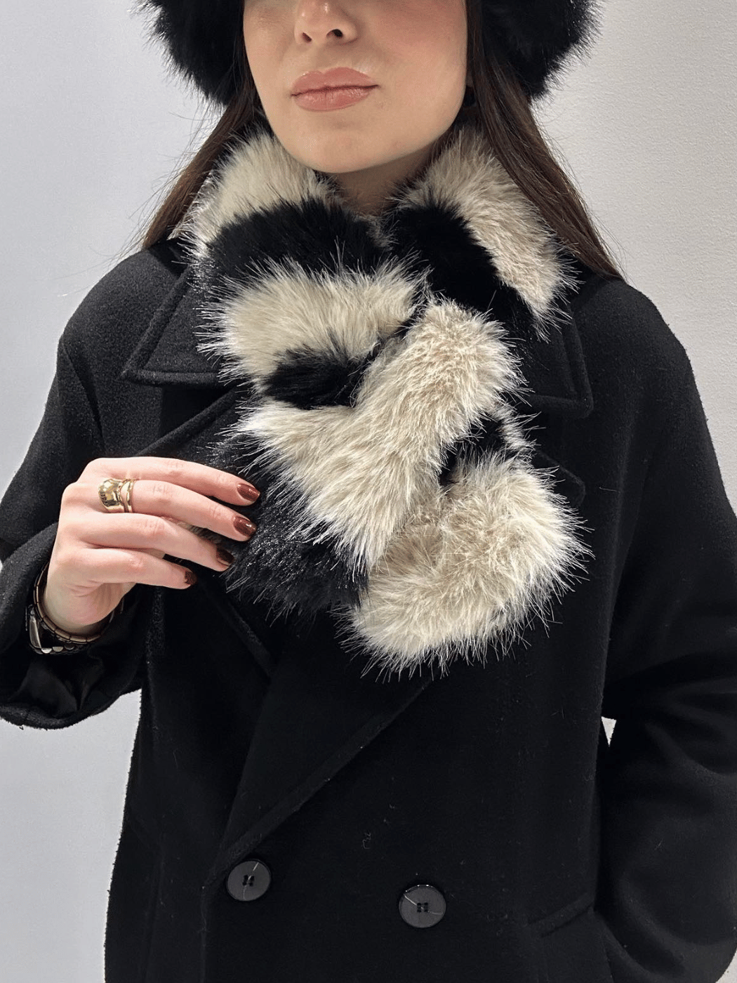 Γυναικείο Γούνινο Σταυρωτό Κασκόλ / Neckwarmer Ζεβρέ σε Μαύρο–Εκρού