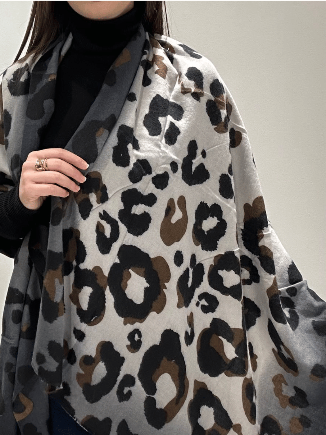 Ανανεώστε τη χειμερινή σας γκαρνταρόμπα με αυτό το εντυπωσιακό κασκόλ που συνδυάζει διακριτικά το wild στοιχείο του λεοπάρ με εκρού και καφέ αποχρώσεις. Η εκρού βάση του δίνει φωτεινότητα, ενώ τα καφέ τελειώματα προσθέτουν βάθος και κομψότητα. Ιδανικό για all-day εμφανίσεις, είτε με παλτό είτε πάνω από ζακέτα ή σακάκι.