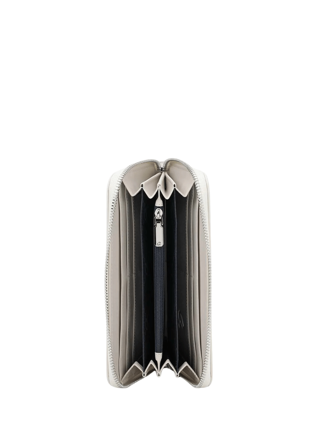 Γυναικείο πορτοφόλι, κατασκευασμένο από τεχνόδερμα υψηλής ποιότητας με λεία υφή. Διαθέτει κεντρική θήκη με φερμουάρ και θέσεις για κάρτες και χαρτονομίσματα. Κλείνει με φερμουάρ.