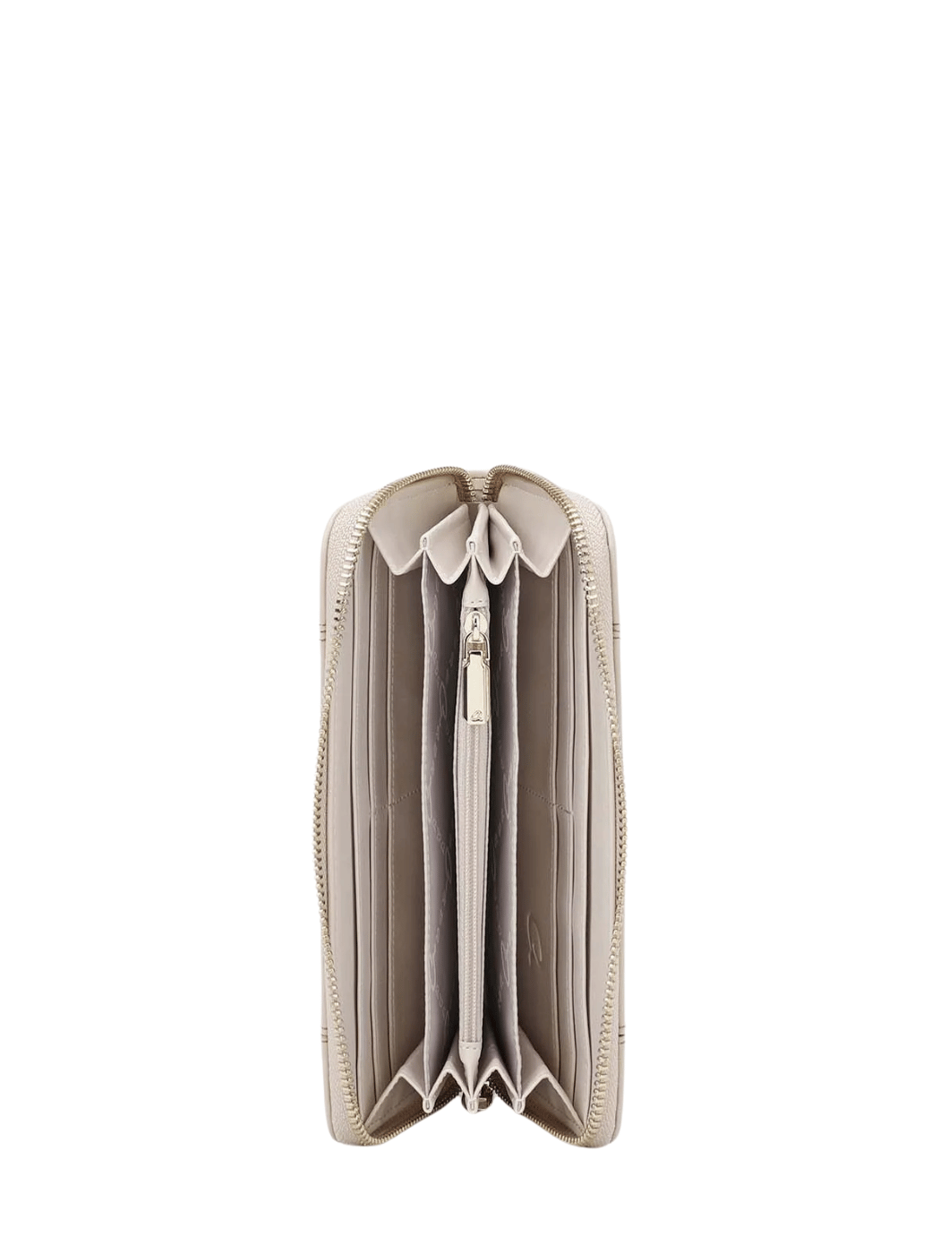 Γυναικείο πορτοφόλι με ραφές από τεχνόδερμα. Διαθέτει θήκη φερμουάρ για νομίσματα, θήκες χαρτονομισμάτων και πολλαπλές θέσεις για κάρτες. Ασφαλίζει με φερμουάρ. Ένα κλασικό πορτοφόλι, ιδανικό για κάθε τσάντα.