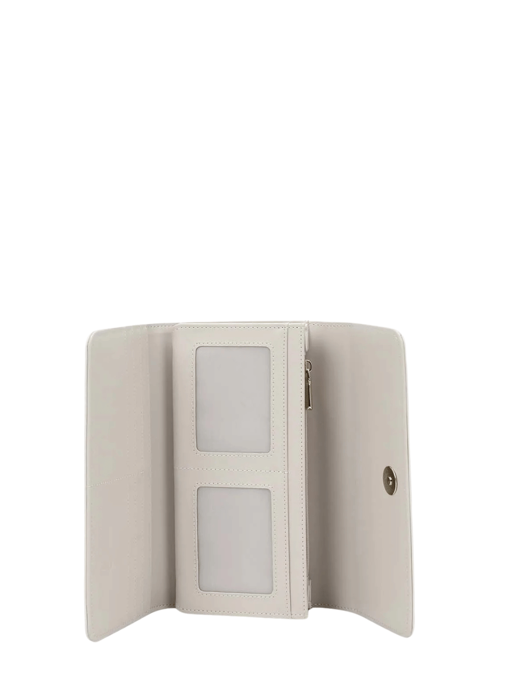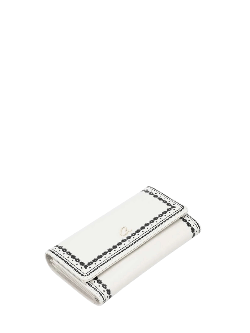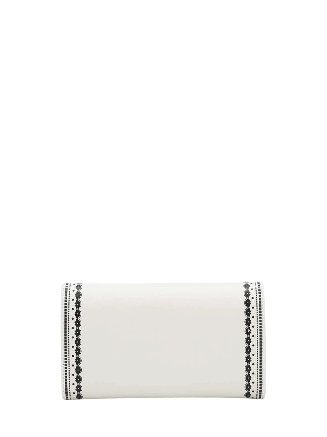 Γυναικείο πορτοφόλι τριπλών θέσεων που διπλώνει, με τύπωμα, κατασκευασμένο από συνθετικό δέρμα. Κλείνει με μεταλλικό κούμπωμα και καπάκι. Διαθέτει θήκες για χαρτονομίσματα, κέρματα, κάρτες και φωτογραφίες.