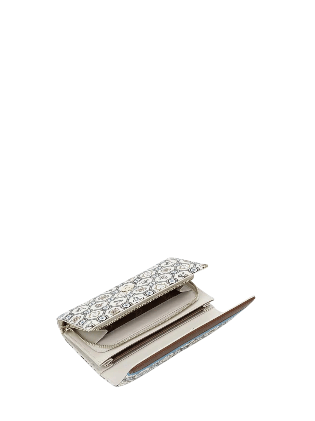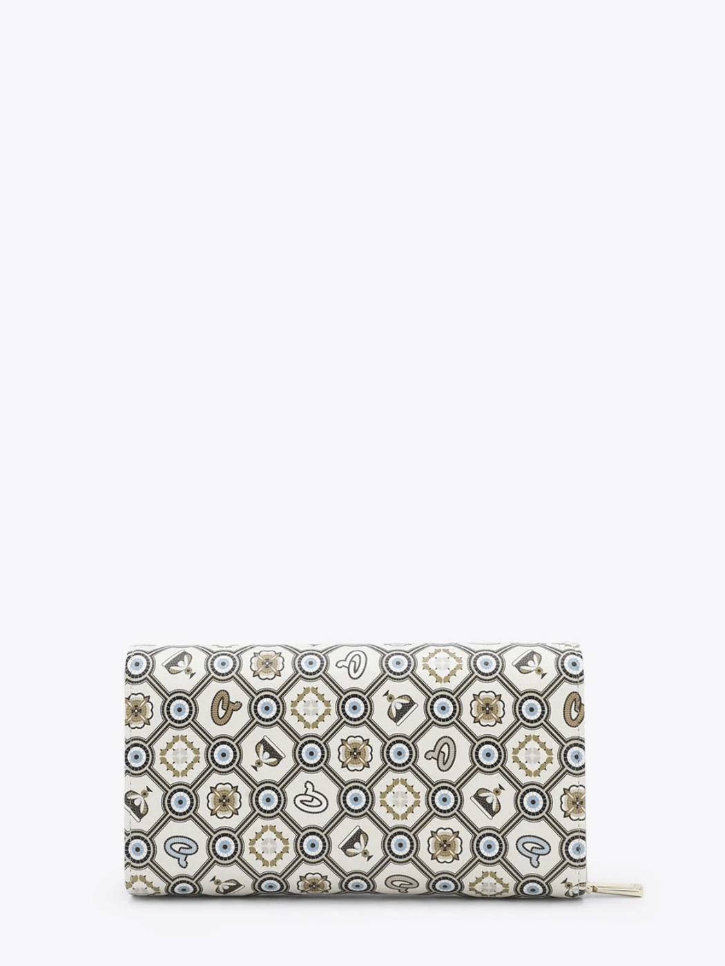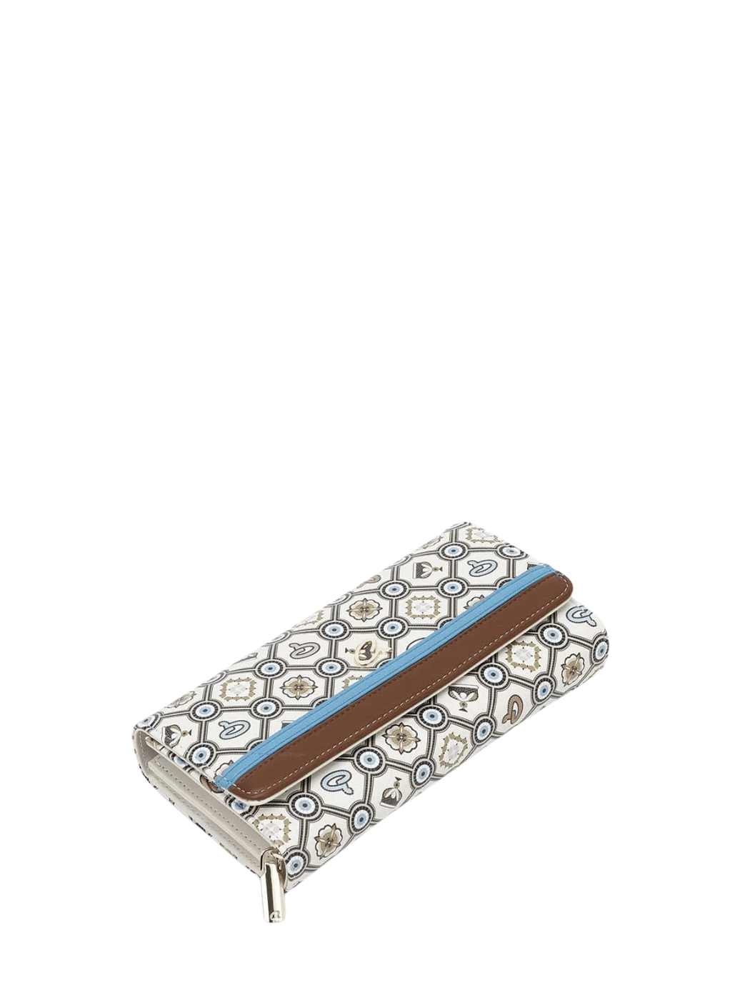 Γυναικείο πορτοφόλι με τύπωμα eye monogram, κατασκευασμένο από τεχνόδερμα. Ασφαλίζει με μαγνήτη και εσωτερικά περιλαμβάνει κεντρική θήκη με φερμουάρ, θέσεις για χαρτονομίσματα και κάρτες. Ιδανικός συνδυασμός για την τσάντα 1023-0618.