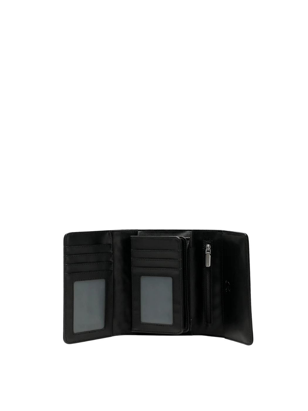 Γυναικεία πορτοφόλι Hilde κατασκευασμένο από ειδικό τεχνόδερμα με σουέτ υφή και ραφές. Εσωτερικά διαθέτει πολλαπλές θέσεις για κάρτες και μετρητά, θήκη και τσέπη φερμουάρ για νομίσματα. Κλείνει με κρυφό μαγνητικό κούμπωμα. Ένα πολύ όμορφο πορτοφόλι, που μπορεί να συνδυαστεί απόλυτα με την τσάντα 1010-3481.