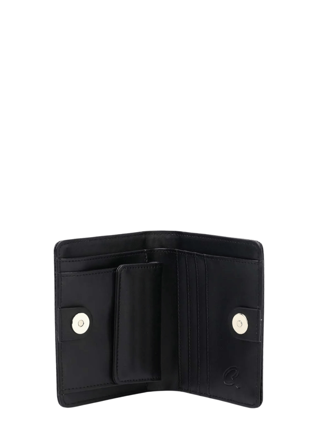 Γυναικείο mini πορτοφόλι με ανάγλυφο σχέδιο που διπλώνει, από υψηλής ποιότητας τεχνόδερμα. Κλείνει με κούμπωμα. Διαθέτει εσωτερικές θήκες για χαρτονομίσματα, κέρματα και κάρτες. Ένα αξεσουάρ για κάθε γυναίκα που θέλει να μεταφέρει τα χρήματα και τις κάρτες της με ασφάλεια.