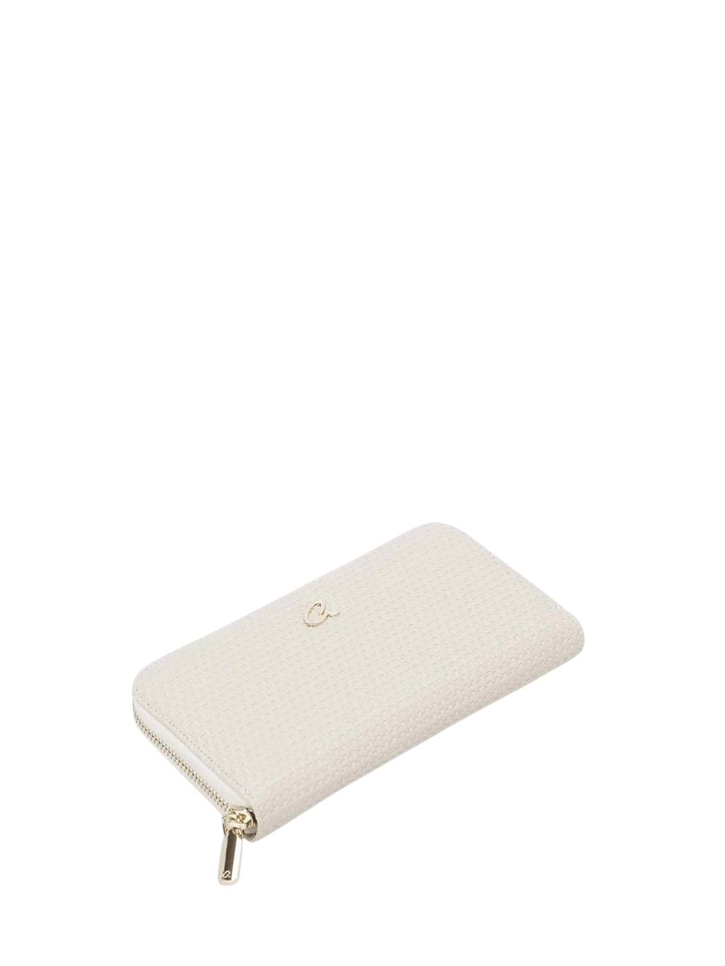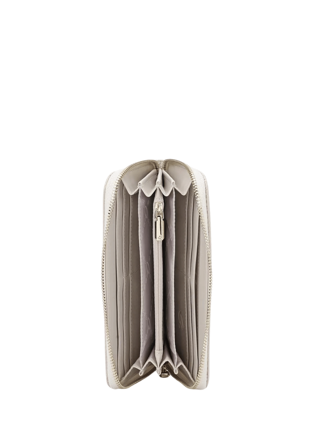 Γυναικείο πορτοφόλι, με ανάγλυφο σχέδιο κατασκευασμένο από τεχνόδερμα υψηλής ποιότητας. Διαθέτει κεντρική θήκη με φερμουάρ και θέσεις για κάρτες και χαρτονομίσματα. Κλείνει με φερμουάρ.