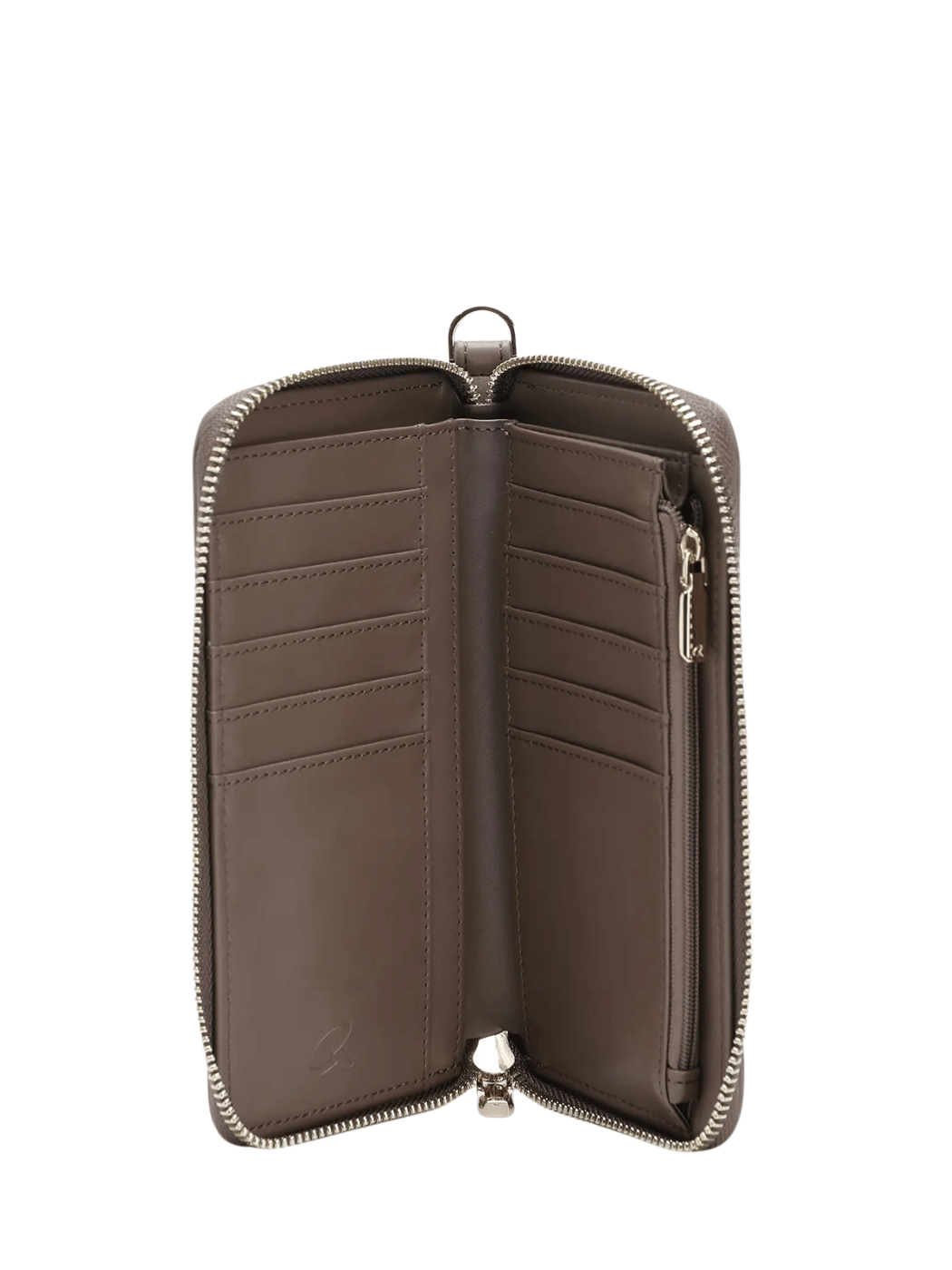 Γυναικείο πορτοφόλι Sissel με ραφές. Είναι κατασκευασμένο από τεχνόδερμα με μαλακή υφή και διαθέτει κλείσιμο με χρυσό μεταλλικό φερμουάρ. Εσωτερικά περιέχει πλαϊνή θέση για χαρτονομίσματα, πολλαπλές θέσεις για κάρτες και θήκη με φερμουάρ. Συνοδεύεται από λουράκι χειρός για ευκολία στο κράτημα.