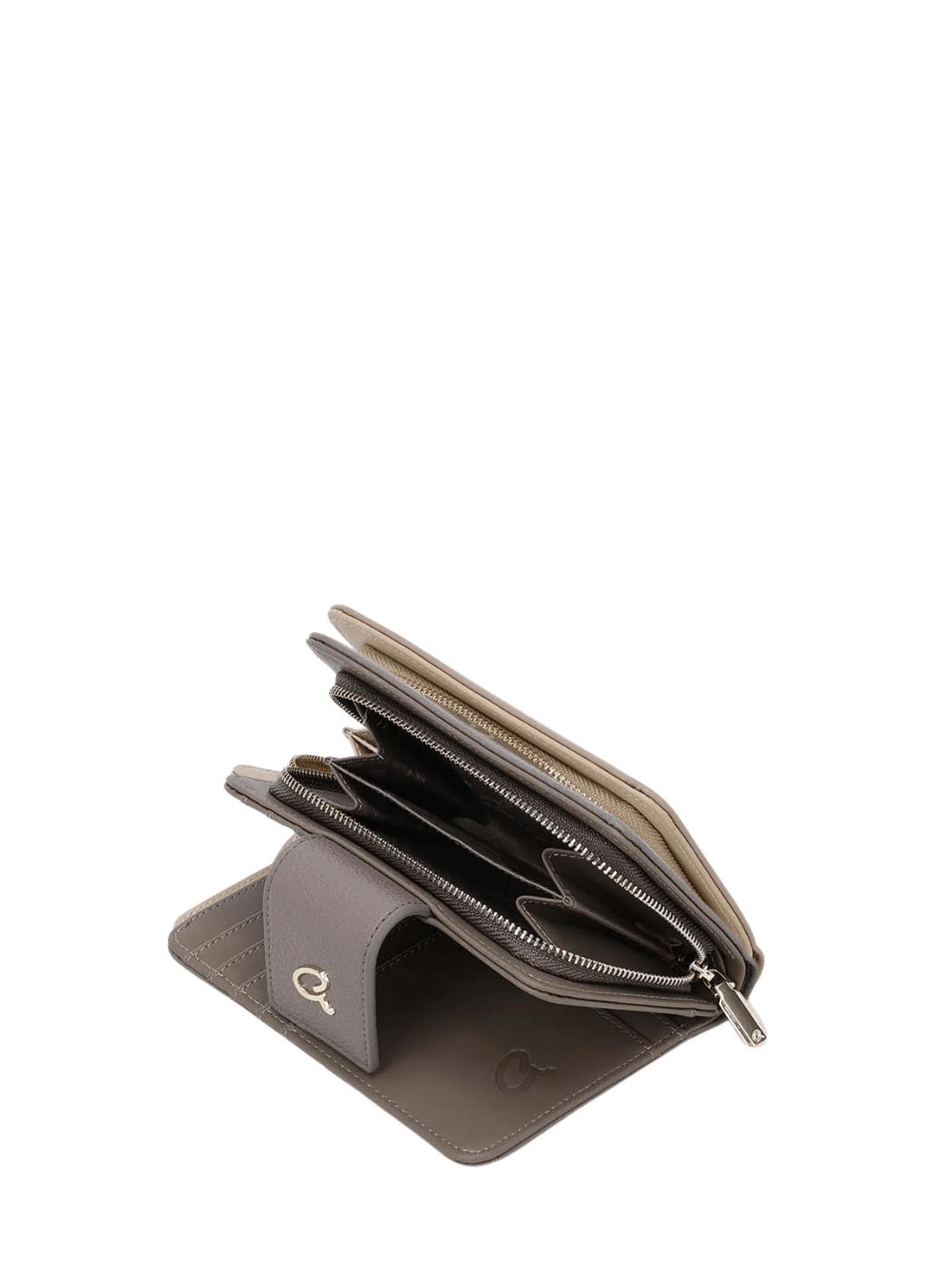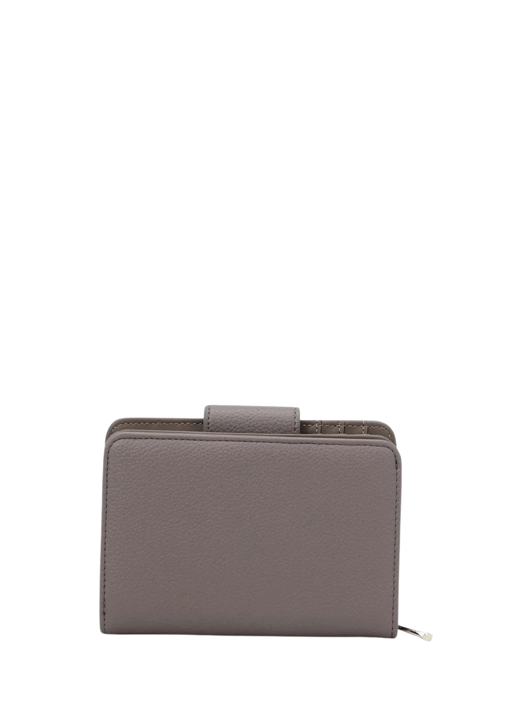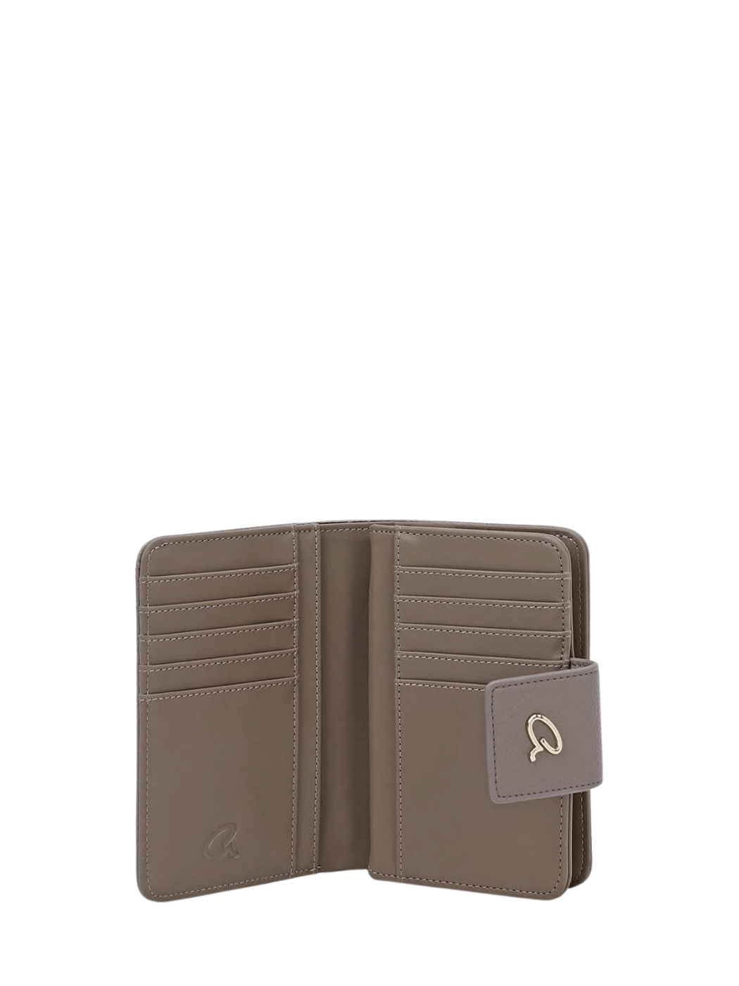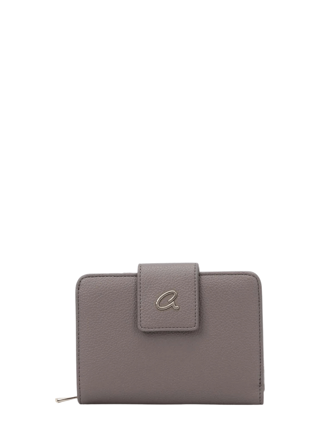 Γυναικείο πορτοφόλι, κατασκευασμένο από τεχνόδερμα. Διαχωρίζεται σε δύο τμήματα ένα με φερμουάρ και ένα με μαγνητικό κούμπωμα, Περιλαμβάνει πολλαπλές θέσεις για κάρτες και χαρτονομίσματα. Με εσωτερικό debossed logo ‘a’.