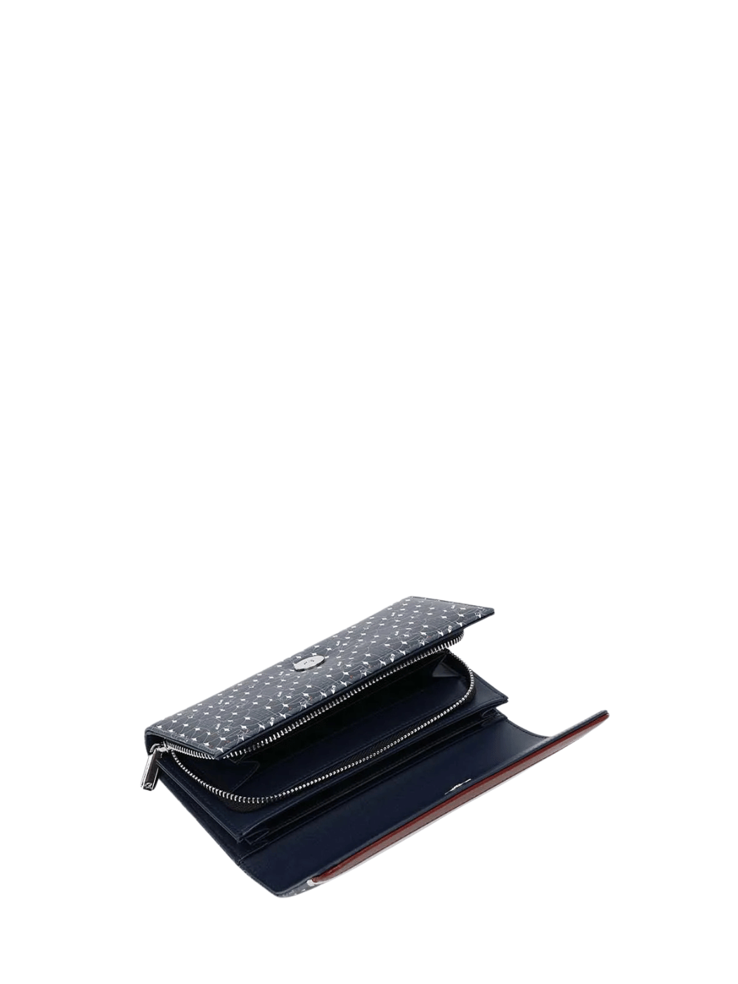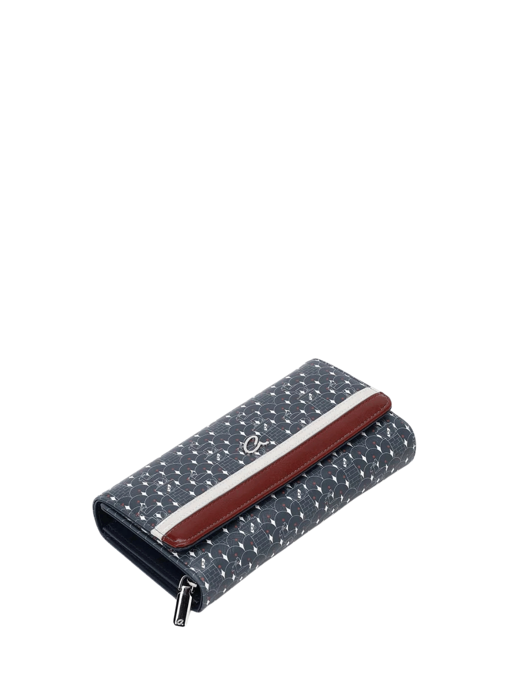 Γυναικείο πορτοφόλι με μωσαϊκό τύπωμα, από τεχνόδερμα. Με θήκες καρτών, εσωτερική θήκη φερμουάρ και θέση για χαρτονομίσματα. Κλείνει με καπάκι και κούμπωμα. Ιδανικός συνδυασμός για το σακίδιο 1023-0616.