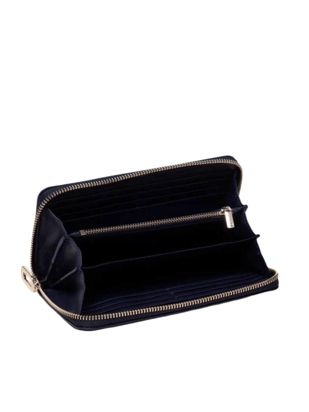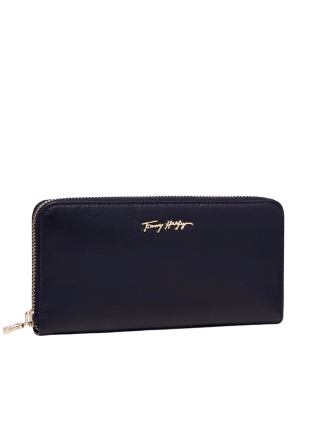 Κομψό γυναικείο πορτοφόλι Tommy Hilfiger Essential Leather Lrg Za, κατασκευασμένο από λείο φυσικό δέρμα υψηλής ποιότητας. Διαθέτει κλείσιμο με φερμουάρ, πρακτική θήκη για κέρματα και κομψές χρυσές μεταλλικές λεπτομέρειες. Σε σκούρο μπλε χρώμα, ιδανικό για καθημερινή χρήση. Παραδίδεται σε κουτί του κατασκευαστή, κατάλληλο και για δώρο.