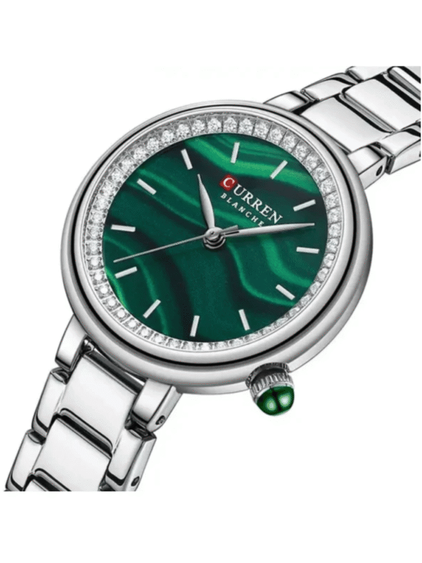 Ανακαλύψτε το γυναικείο ρολόι Curren 9092 Gold Green. Διαθέτει πράσινο καντράν διακοσμημένο με λαμπερά στρας, χρυσό μπρασελέ από ανοξείδωτο ατσάλι και αξιόπιστο ιαπωνικό μηχανισμό QUARTZ Japan. Ένα μοναδικό αξεσουάρ που συμπληρώνει κάθε εμφάνιση με στυλ και κομψότητα.