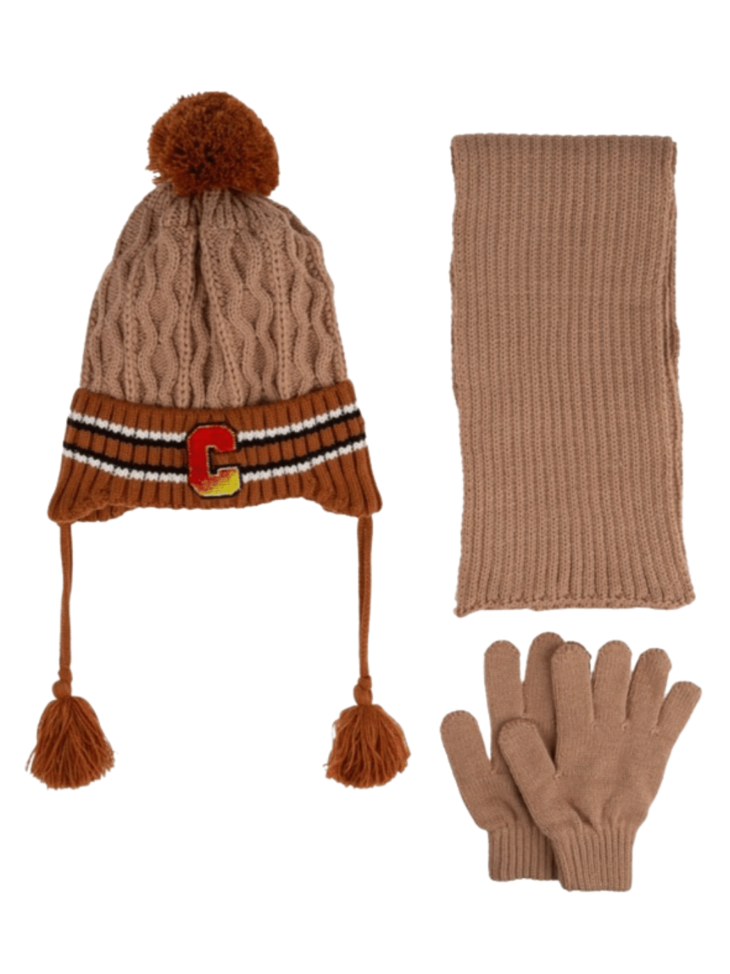Παιδικό χειμερινό σετ 3 τεμαχίων, πλεκτό με εσωτερική fleece επένδυση και φουντίτσα σε καφέ χρώμα για αγόρι. Ιδανικά για την προστασία του παιδιού από το κρύο. Το σετ περιλαμβάνει σκουφάκι-γάντια-κασκόλ.