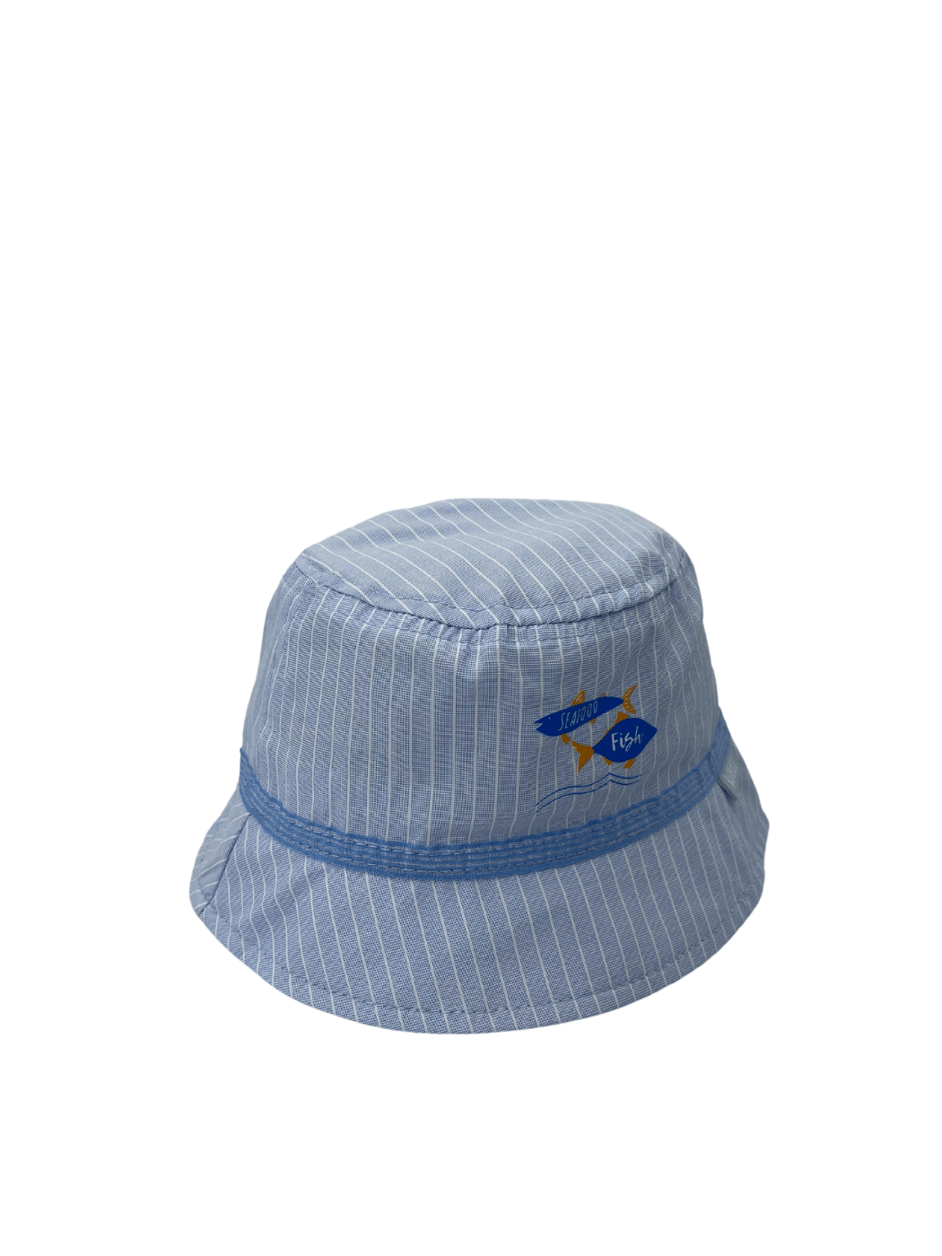 Ριγέ καπέλο με στάμπα ψαράκια στο μπροστινό μέρος.