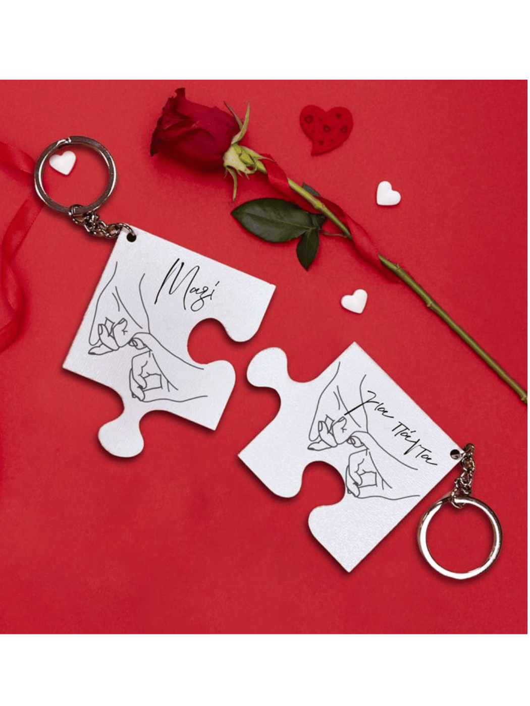 Σετ ξύλινα μπρελόκ για τα κλειδιά σε σχήμα παζλ με ενωμένα χέρια. Ένα έξυπνο δωράκι για ζευγάρια!